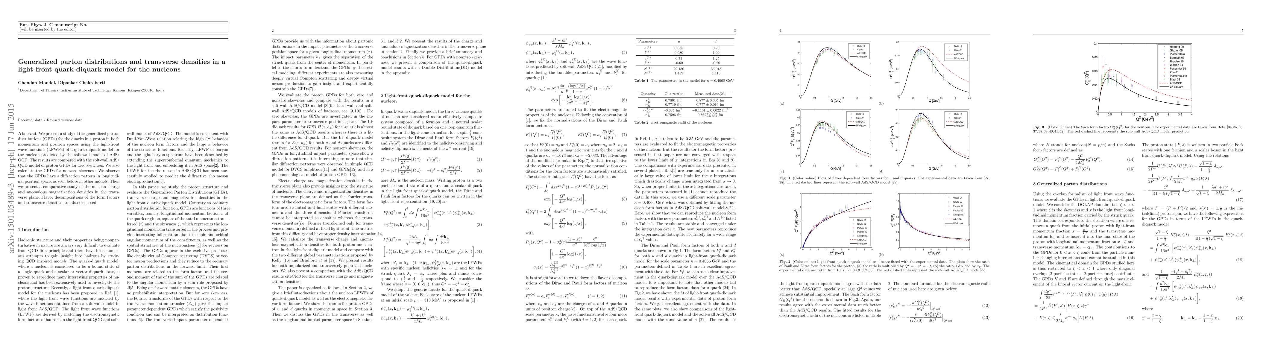 This paper investigates generalized parton distributions (GPDs) for quarks in a proton using a light-front quark-diquark model derived from the soft-wall AdS/QCD model. It compares GPDs for both zero and nonzero skewness, revealing a diffraction pattern in longitudinal position space, and discusses the nucleon's charge and anomalous magnetization densities in the transverse plane, including flavor decompositions.