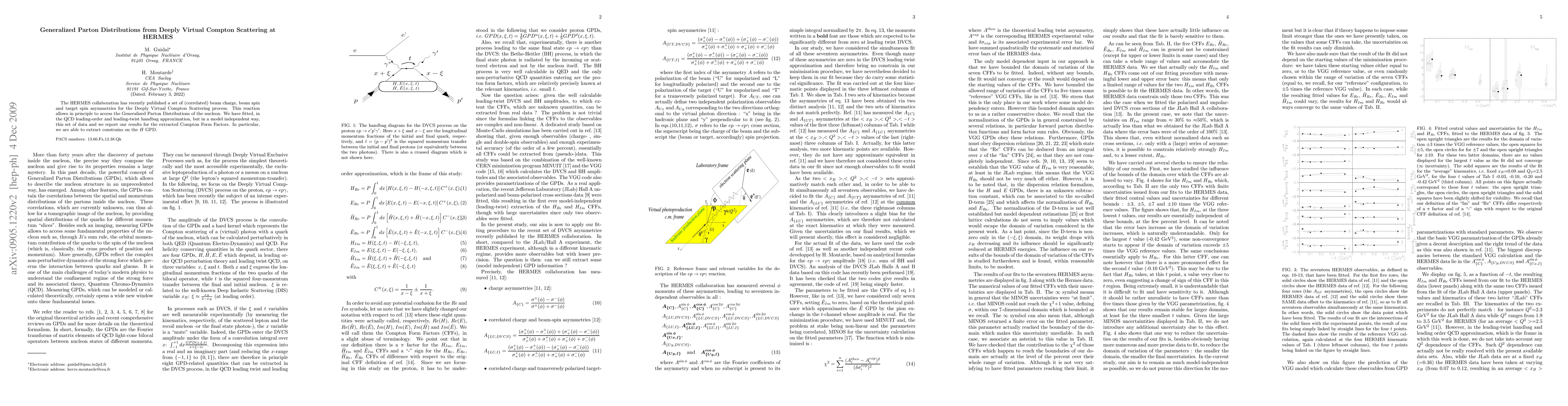 The HERMES collaboration presents asymmetries from Deeply Virtual Compton Scattering to access Generalized Parton Distributions. In a model-independent QCD analysis, they extract Compton Form Factors, specifically providing constraints on the $H$ Generalized Parton Distribution.