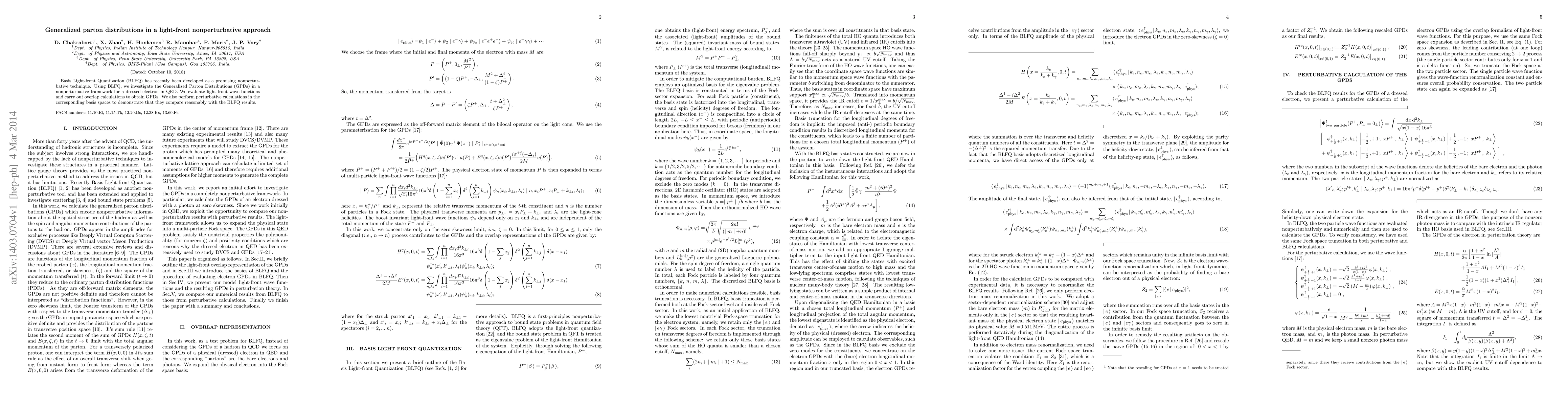 This paper employs Light-front Quantization (BLFQ) to study Generalized Parton Distributions (GPDs) for a dressed electron in QED, evaluating light-front wave functions and performing overlap calculations. It also compares nonperturbative BLFQ results with perturbative calculations to validate the approach.