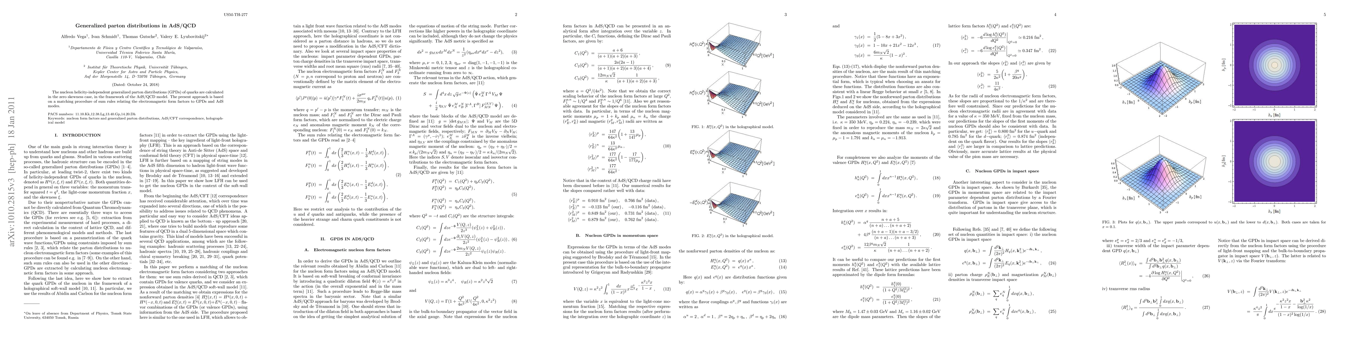 This paper calculates nucleon helicity-independent generalized parton distributions (GPDs) for quarks in the AdS/QCD model using a matching procedure that connects electromagnetic form factors to GPDs and AdS modes, focusing on the zero skewness scenario.