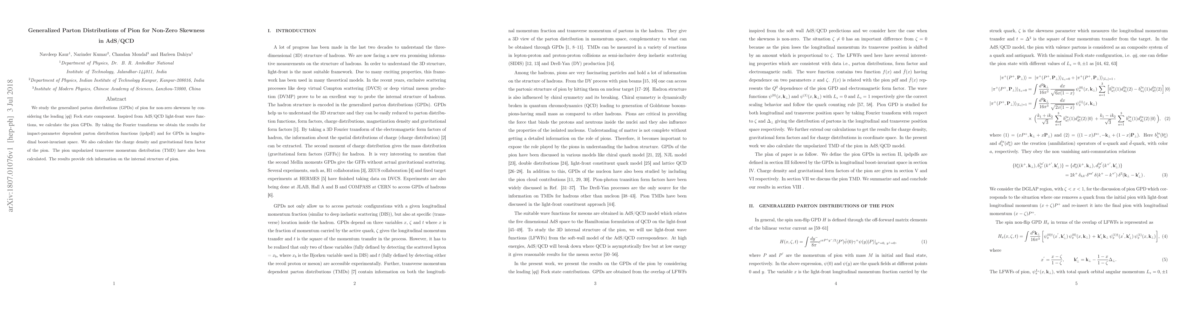 This work extends previous studies by considering non-zero skewness in pion GPDs within the AdS/QCD framework, offering a more detailed examination of pion's internal structure and parton distributions.