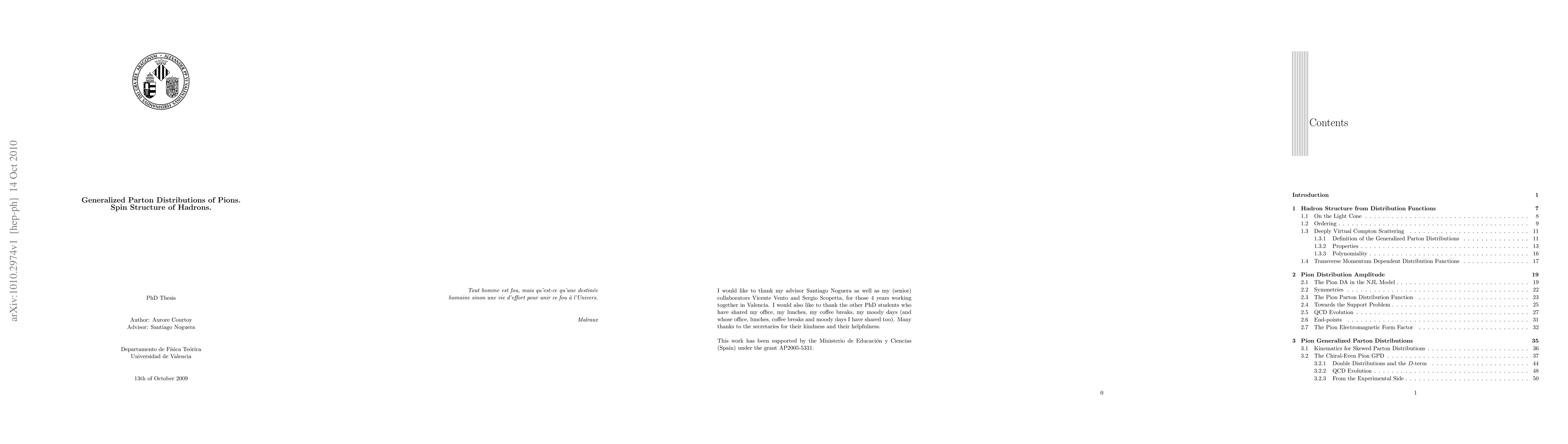 We present an extensive study on generalized parton distributions of pions. In particular, we present the results for the pion-photon transition distribution amplitudes in the Nambu - Jona-Lasinio model. We discuss the phenomenology of such objects and give explicit estimates for cross sections. The spin structure of the proton is also studied: we discuss the results for the T-odd transverse momentum distributions in quark models.