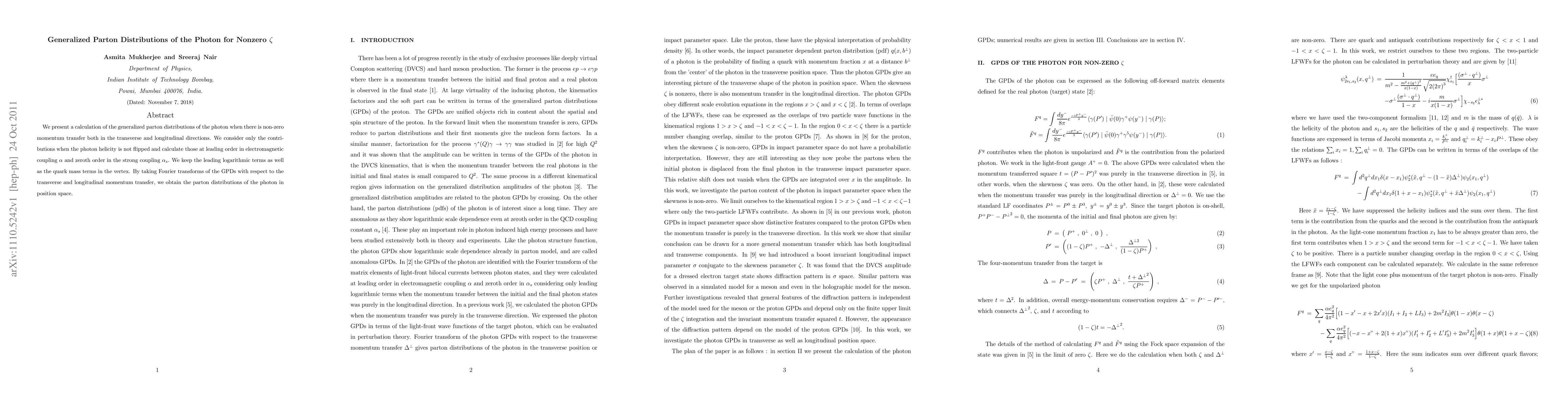 Researchers calculated the generalized parton distributions of the photon for nonzero zeta, focusing on momentum transfer in both transverse and longitudinal directions, and found new insights into the photon's structure.
