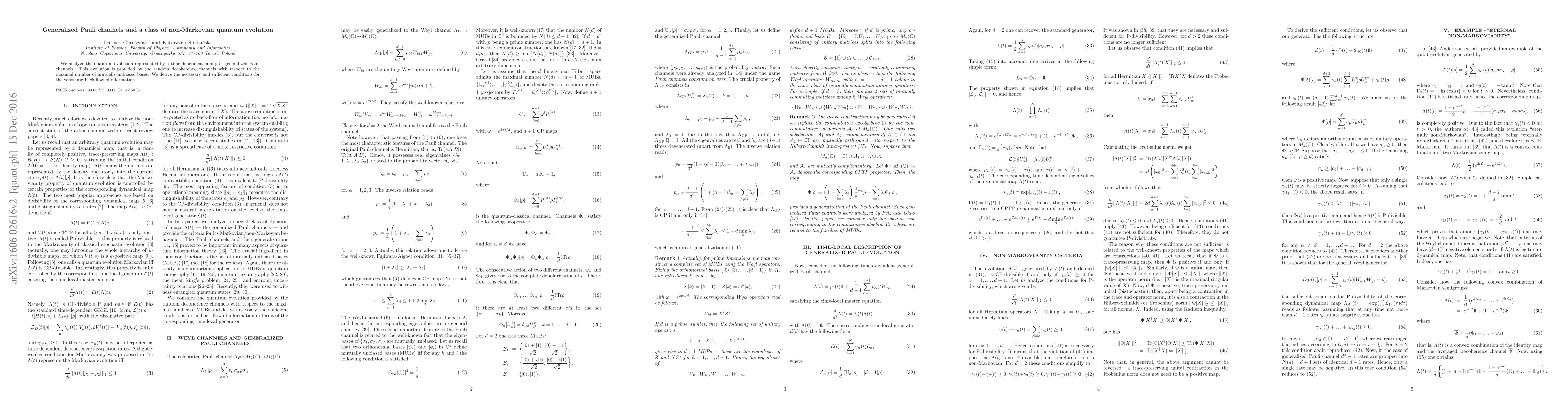 This paper analyzes quantum evolution through generalized Pauli channels, studying conditions for information back-flow to vanish, and presents a class of non-Markovian quantum evolution models.