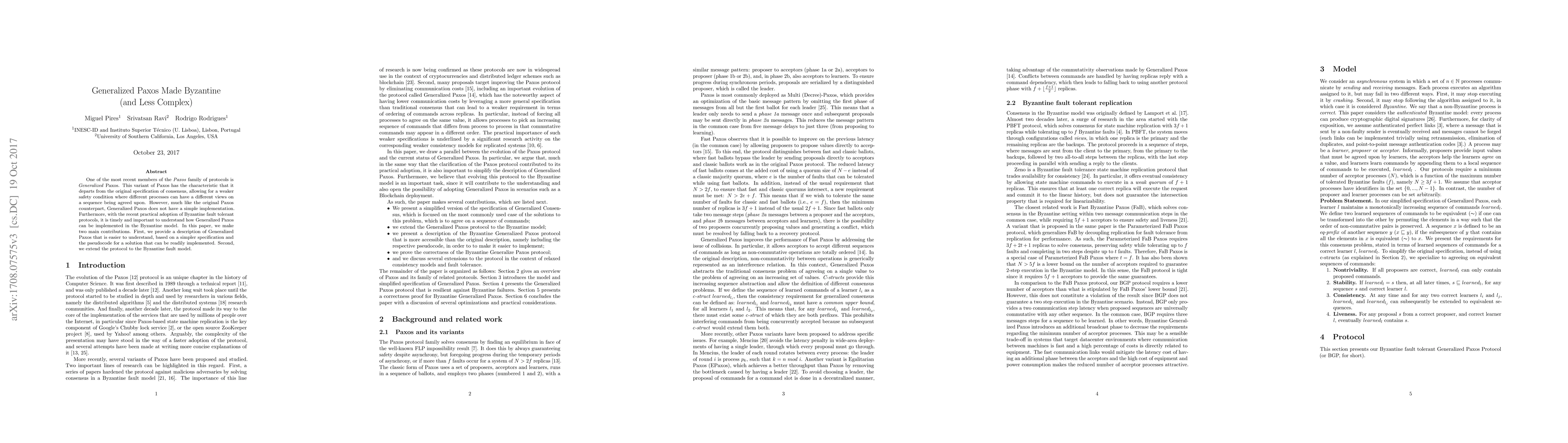 This paper simplifies the Generalized Paxos protocol, offering an easier-to-understand specification and pseudocode. It also extends the protocol to the Byzantine fault model, making it more practical for real-world applications.