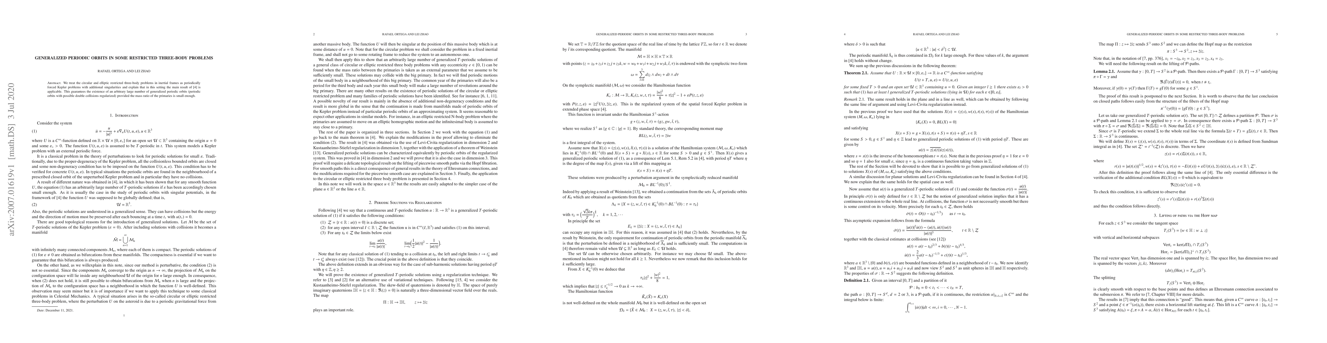 This paper demonstrates the existence of numerous generalized periodic orbits in both circular and elliptic restricted three-body problems by treating them as periodically forced Kepler problems. The main result from [4] ensures the existence of these orbits when the mass ratio of the primaries is sufficiently small.