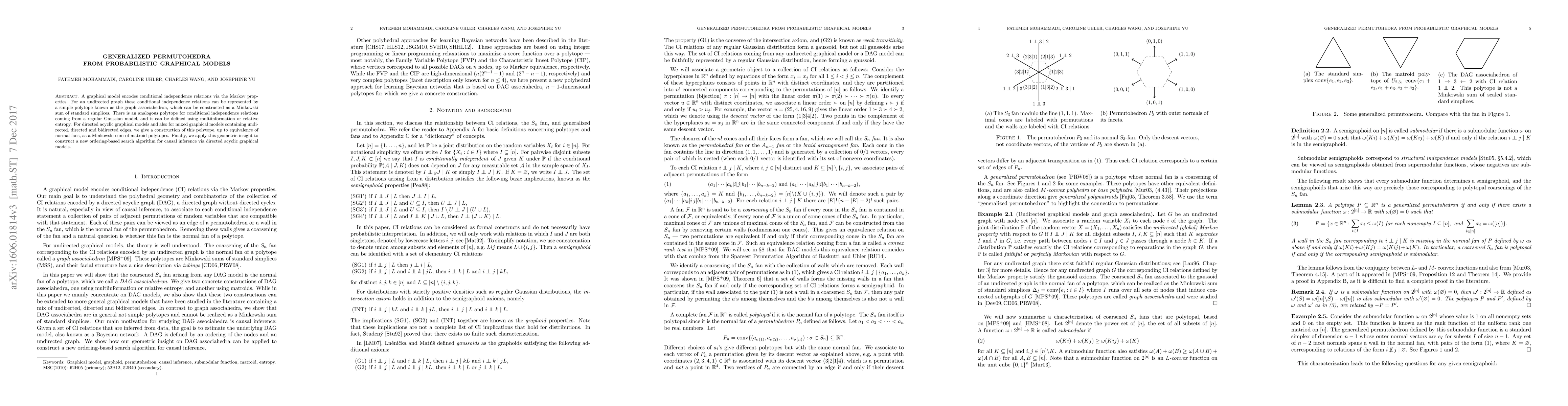 This paper constructs generalized permutohedra for various types of probabilistic graphical models, including directed acyclic and mixed graphical models, as Minkowski sums of matroid polytopes. It also introduces a new search algorithm for causal inference based on these geometric insights.
