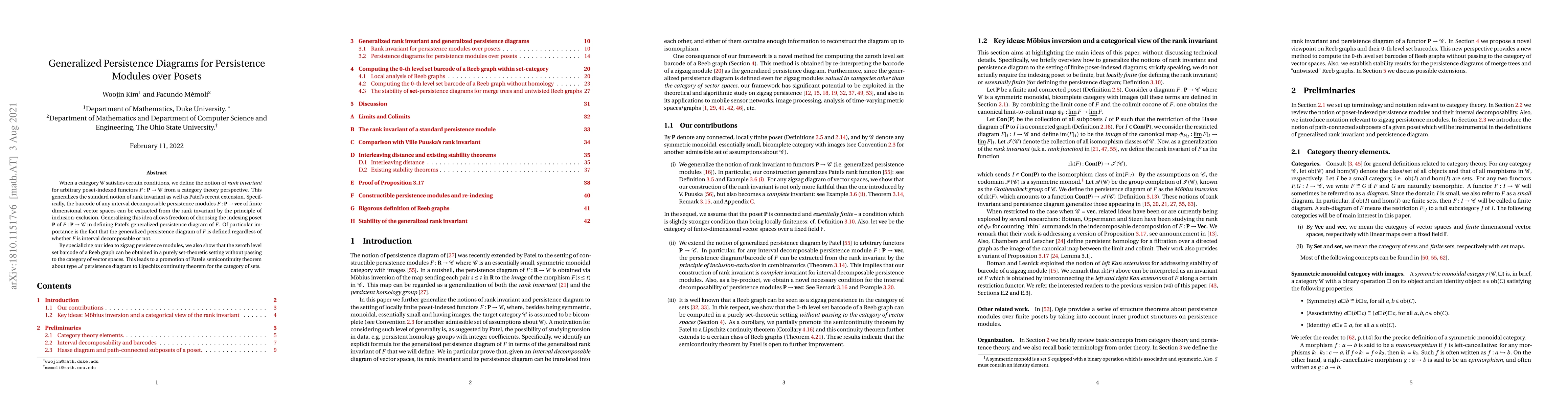 The paper introduces rank invariants for poset-indexed functors and generalizes persistence diagrams, applying them to interval decomposable persistence modules and zigzag persistence modules.