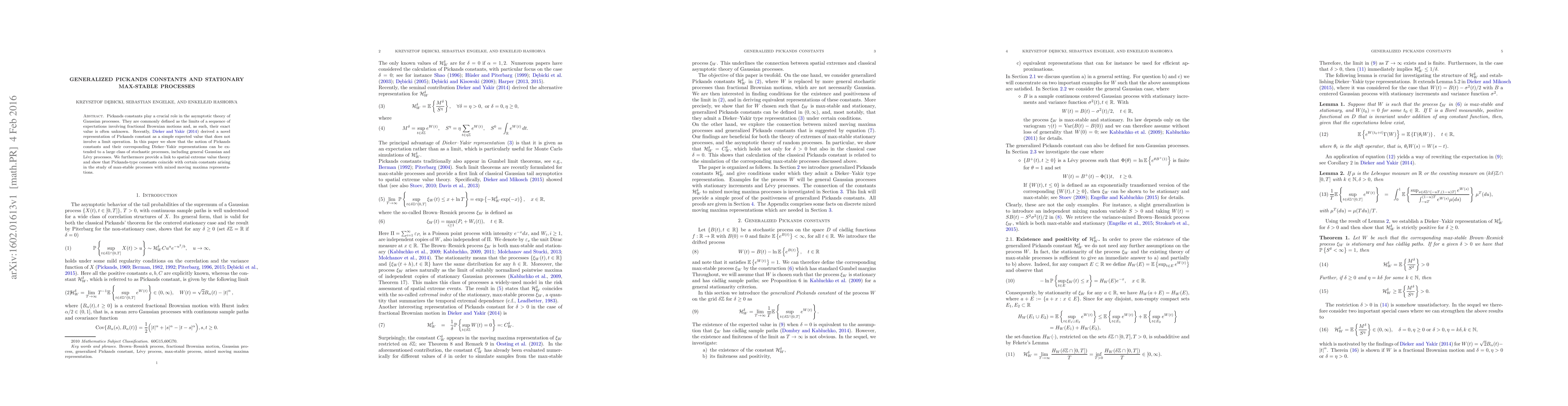 This paper extends the concept of Pickands constants to a broad class of stochastic processes, including general Gaussian and Lévy processes, and connects it to spatial extreme value theory, showing that these constants align with those found in the study of max-stable processes.