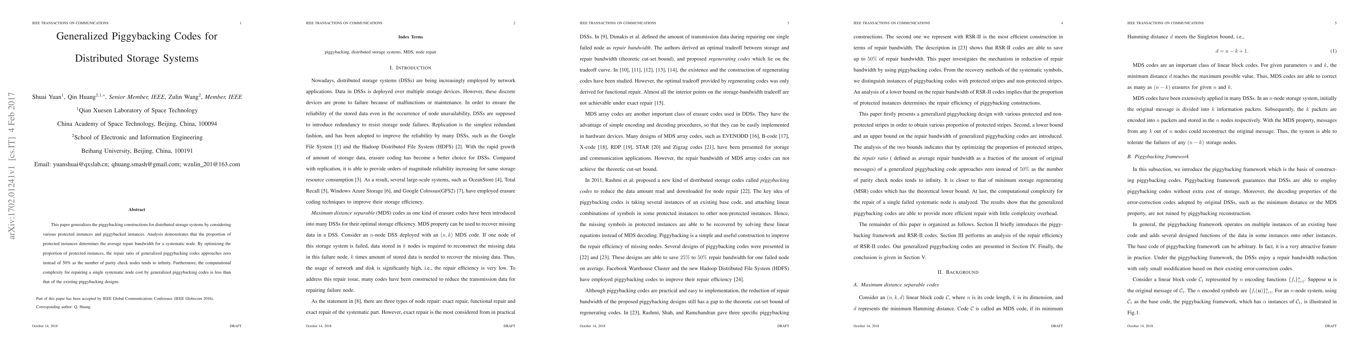 This paper generalizes piggybacking constructions for distributed storage systems, showing that optimizing protected instances can reduce repair bandwidth and approach zero repair ratio as parity nodes increase. The computational complexity for repairing nodes is also lower than existing designs.