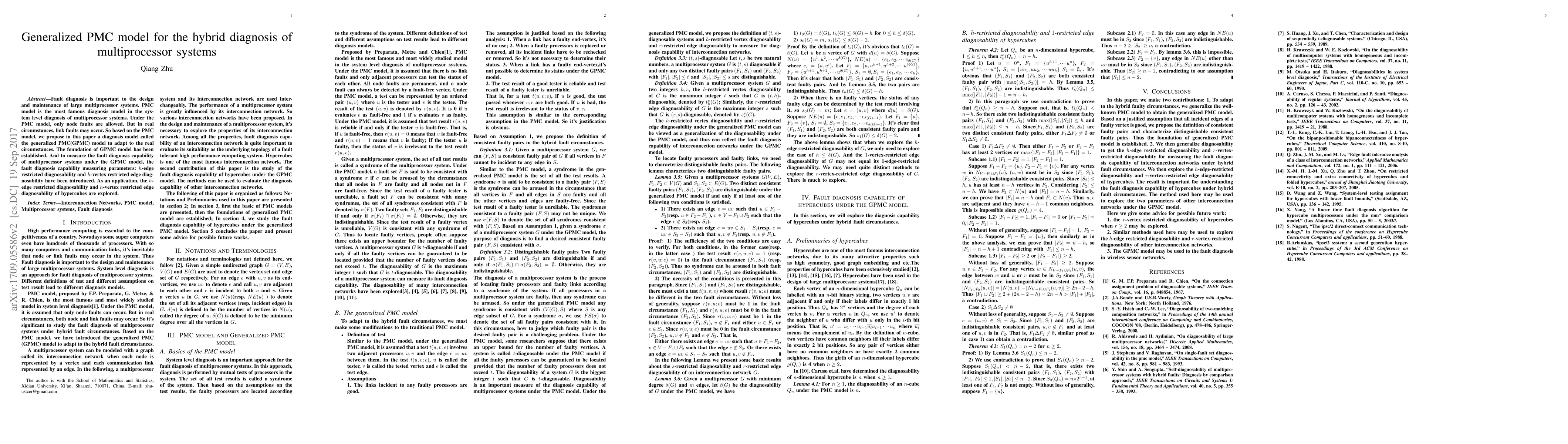 Fault diagnosis is important to the design and maintenance of large multiprocessor systems. PMC model is the most famous diagnosis model in the system level diagnosis of multiprocessor systems. Under the PMC model, only node faults are allowed. But in real circumstances, link faults may occur. So based on the PMC model, we propose in this paper a diagnosis model called the generalized PMC(GPMC) model to adapt to the real circumstances. The foundation of GPMC model has been established. And to measure the fault diagnosis capability of multiprocessor systems under the GPMC model, the fault diagnosis capability measuring parameters: $h$-edge restricted diagnosability and $h$-vertex restricted edge diagnosability have been introduced. As an application, the $h$-edge restricted diagnosability and $h$-vertex restricted edge diagnosability of hypercubes are explored.