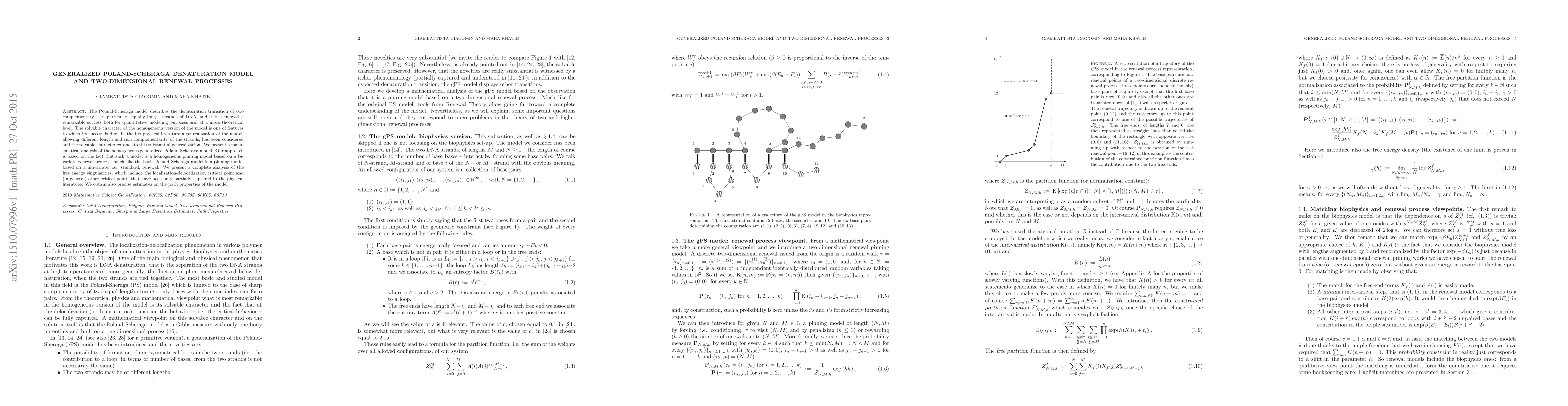 This paper generalizes the Poland-Scheraga model for DNA denaturation, extending its applicability to strands of different lengths and non-complementary sequences. The authors analyze the model using a bivariate renewal process, providing a complete mathematical analysis of the free energy singularities and precise estimates on the path properties.