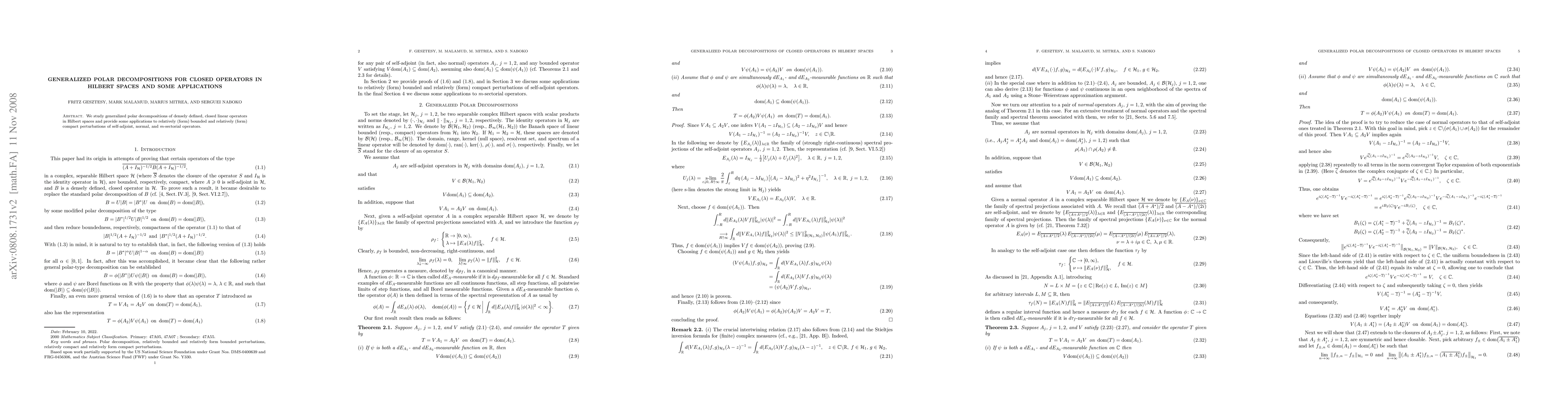 Summary: This paper explores generalized polar decompositions for closed linear operators in Hilbert spaces, focusing on applications to perturbations of self-adjoint, normal, and m-sectorial operators, including relatively bounded and compact forms.