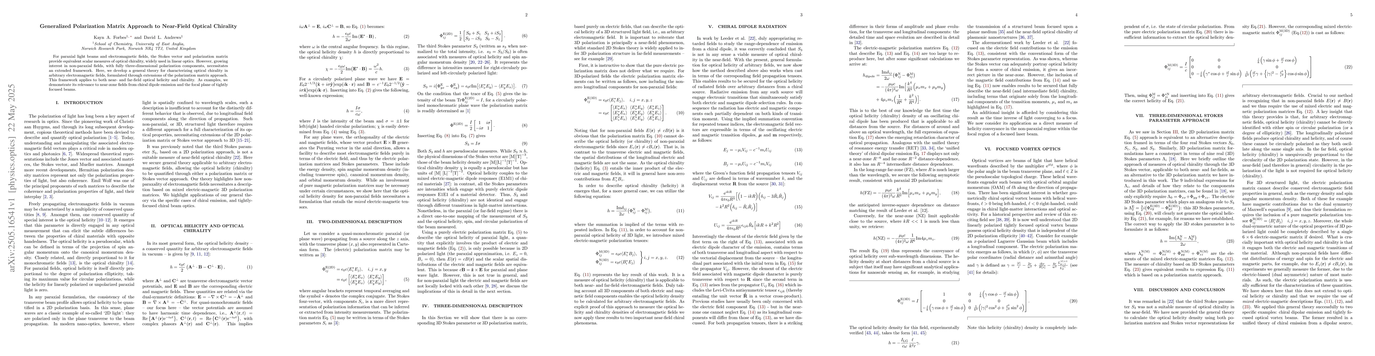 The generalized polarization matrix approach for characterizing optical chirality in non-paraxial fields.