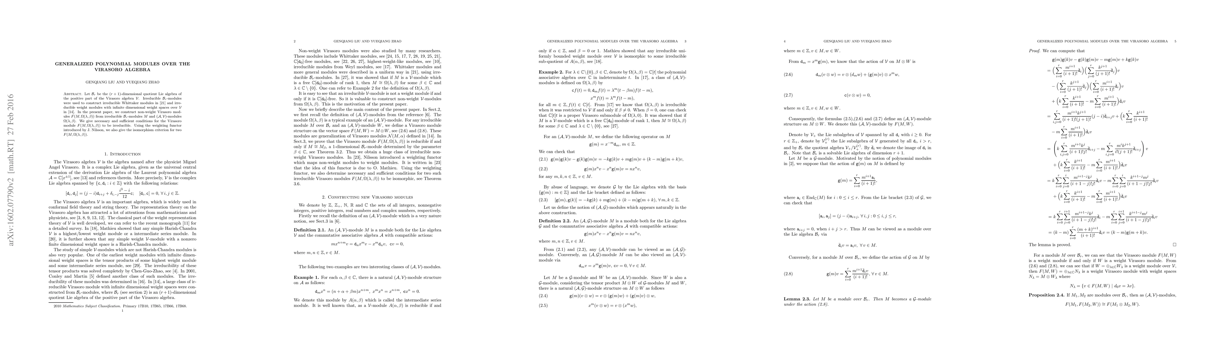 The main technical contribution of this paper is the construction of non-weight Virasoro modules from irreducible $oldsymbol{cal{B}_r}$-modules and $(oldsymbol{A},oldsymbol{V})$-modules.