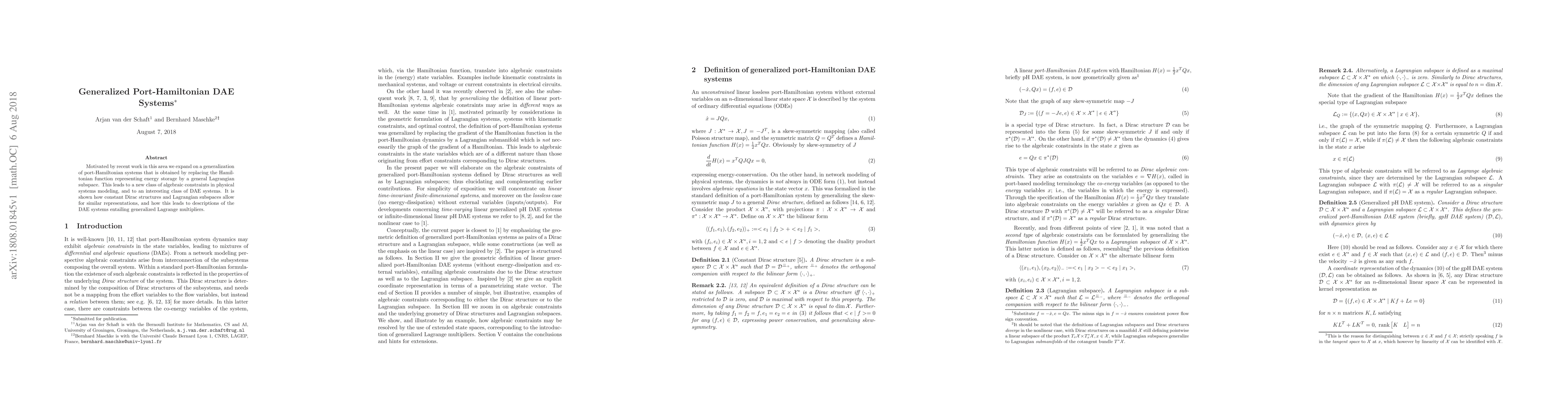 Motivated by recent work in this area we expand on a generalization of port-Hamiltonian systems that is obtained by replacing the Hamiltonian function representing energy storage by a general Lagrangian subspace. This leads to a new class of algebraic constraints in physical systems modeling, and to an interesting class of DAE systems. It is shown how constant Dirac structures and Lagrangian subspaces allow for similar representations, and how this leads to descriptions of the DAE systems entailing generalized Lagrange multipliers.