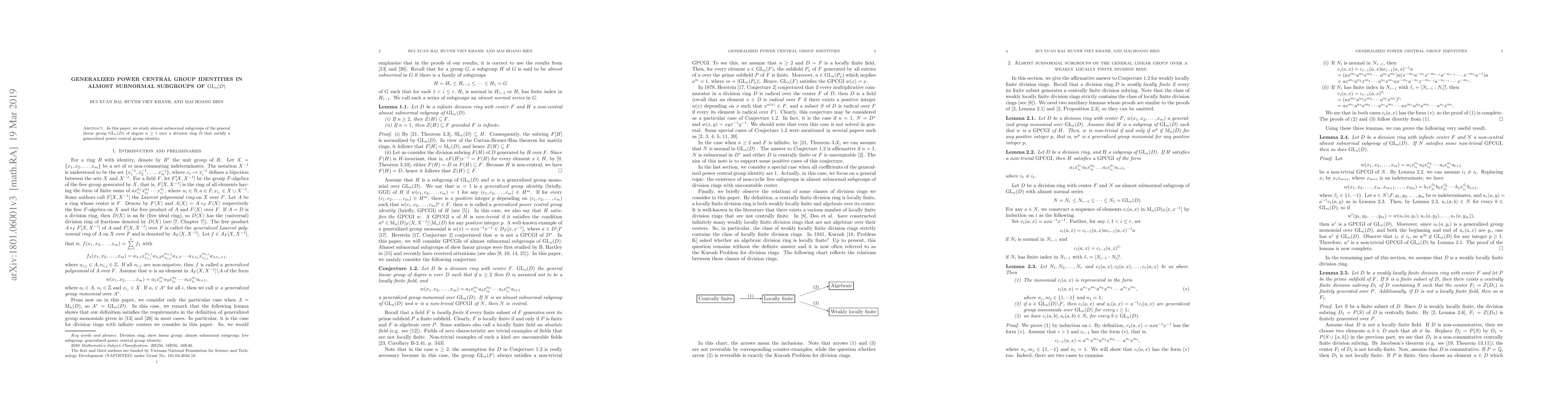 This paper investigates almost subnormal subgroups of the general linear group $\GL_n(D)$ that adhere to a generalized power central group identity, exploring their structural properties and characteristics.