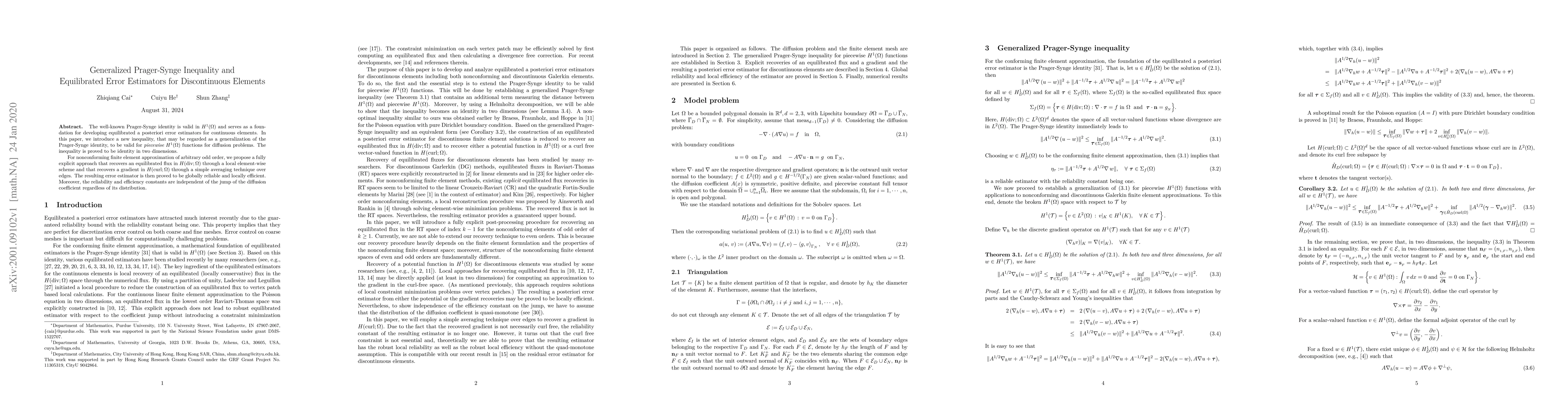 The well-known Prager-Synge identity is valid in $H^1(\Omega)$ and serves as a foundation for developing equilibrated a posteriori error estimators for continuous elements. In this paper, we introduce a new inequality, that may be regarded as a generalization of the Prager-Synge identity, to be valid for piecewise $H^1(\Omega)$ functions for diffusion problems. The inequality is proved to be identity in two dimensions. For nonconforming finite element approximation of arbitrary odd order, we propose a fully explicit approach that recovers an equilibrated flux in $H(div; \Omega)$ through a local element-wise scheme and that recovers a gradient in $H(curl;\Omega)$ through a simple averaging technique over edges. The resulting error estimator is then proved to be globally reliable and locally efficient. Moreover, the reliability and efficiency constants are independent of the jump of the diffusion coefficient regardless of its distribution.