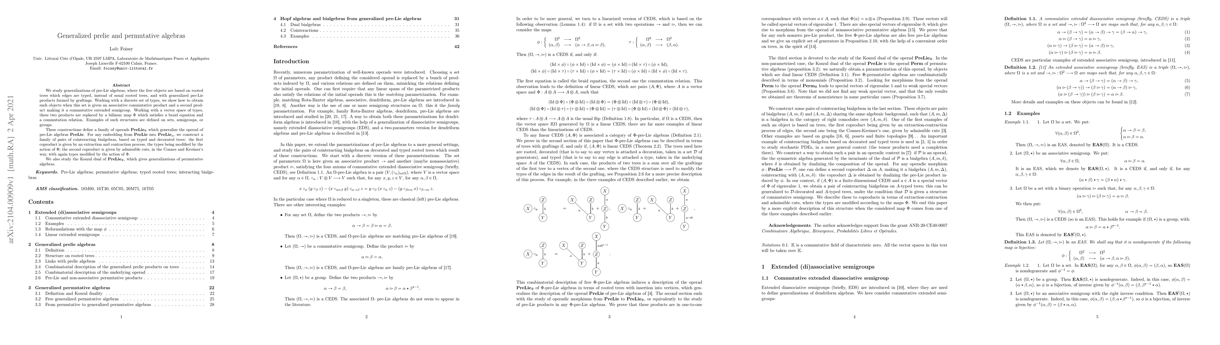 Researchers generalized pre-Lie algebras to include typed trees with grafting operations, creating a new family of operads called PreLie \Phi that generalize the original pre-Lie algebra operad.