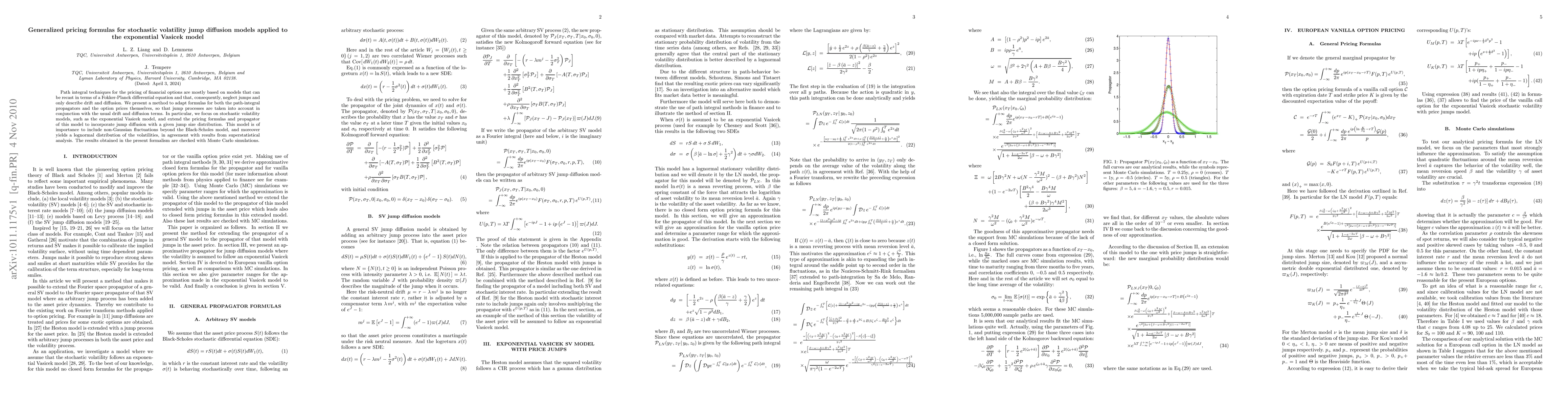 This paper develops generalized pricing formulas for stochastic volatility jump diffusion models, specifically adapting them for the exponential Vasicek model. The method incorporates jump processes alongside drift and diffusion, extending the model to include non-Gaussian fluctuations and validated through Monte Carlo simulations.