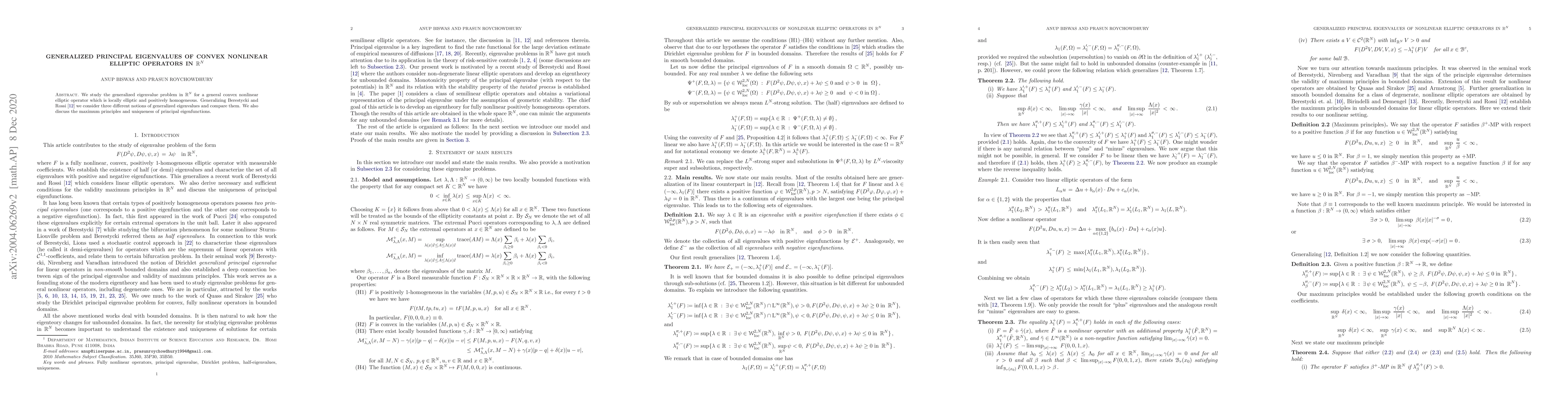 The paper studies generalized eigenvalues of convex nonlinear elliptic operators in R^N, exploring different notions of generalized eigenvalues and their implications for principal eigenfunctions and maximum principles.
