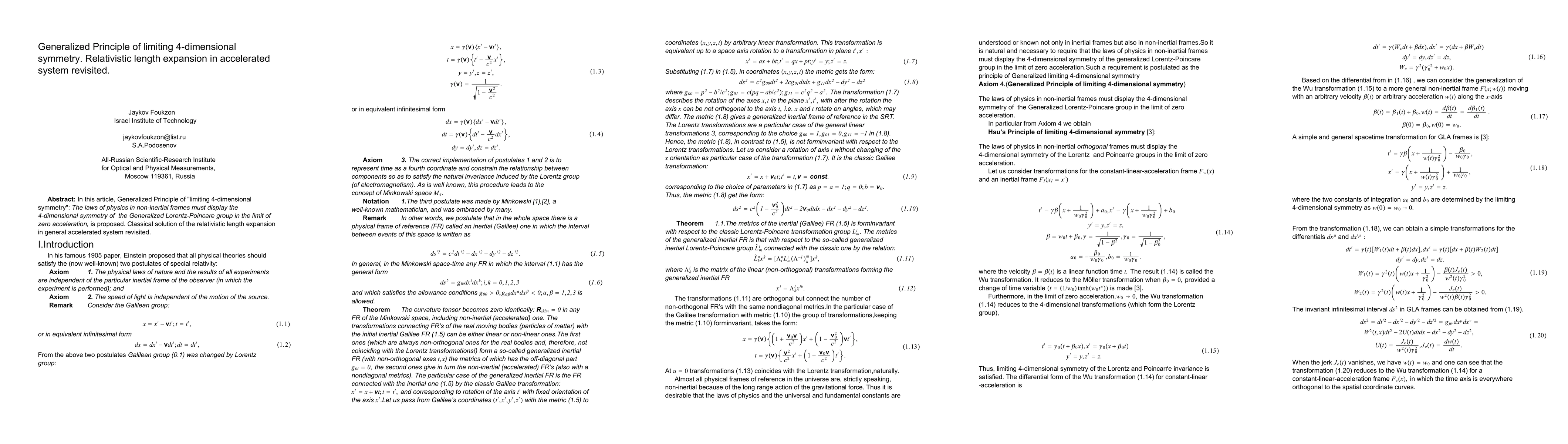 This paper proposes the Generalized Principle of "limiting 4-dimensional symmetry," asserting that physical laws in non-inertial frames should exhibit 4-dimensional symmetry of the Generalized Lorentz-Poincare group as acceleration approaches zero. It also revisits the classical solution for relativistic length expansion in general accelerated systems.