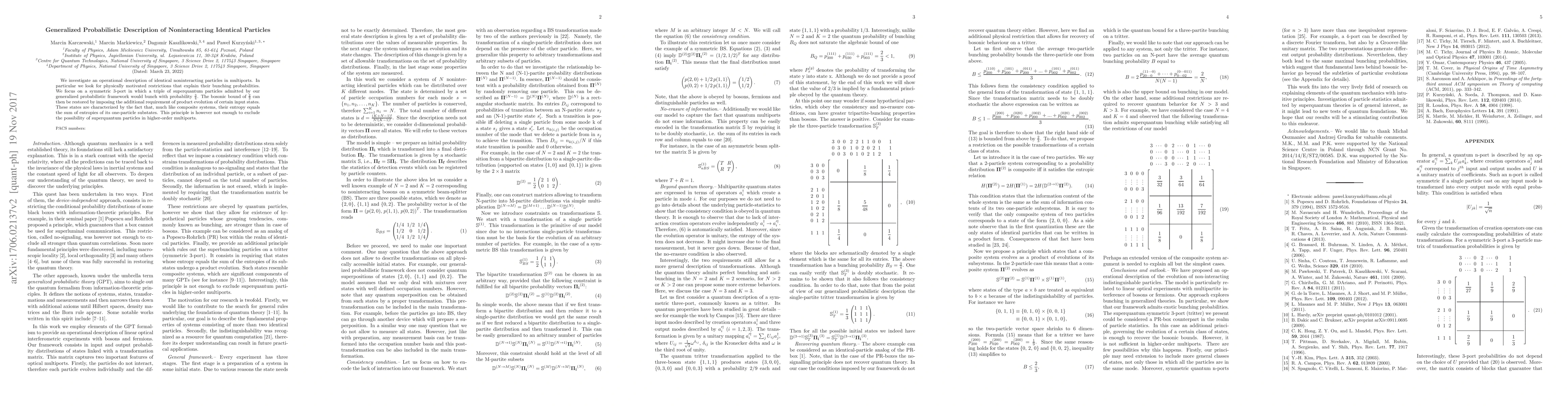 We investigate an operational description of identical noninteracting particles in multiports. In particular we look for physically motivated restrictions that explain their bunching probabilities. We focus on a symmetric 3-port in which a triple of superquantum particles admitted by our generalized probabilistic framework would bunch with probability 3/4. The bosonic bound of 2/3 can then be restored by imposing the additional requirement of product evolution of certain input states. These states are characterized by the fact that, much like composite systems, their entropy equals the sum of entropies of its one-particle substates. This principle is however not enough to exclude the possibility of superquantum particles in higher-order multiports.