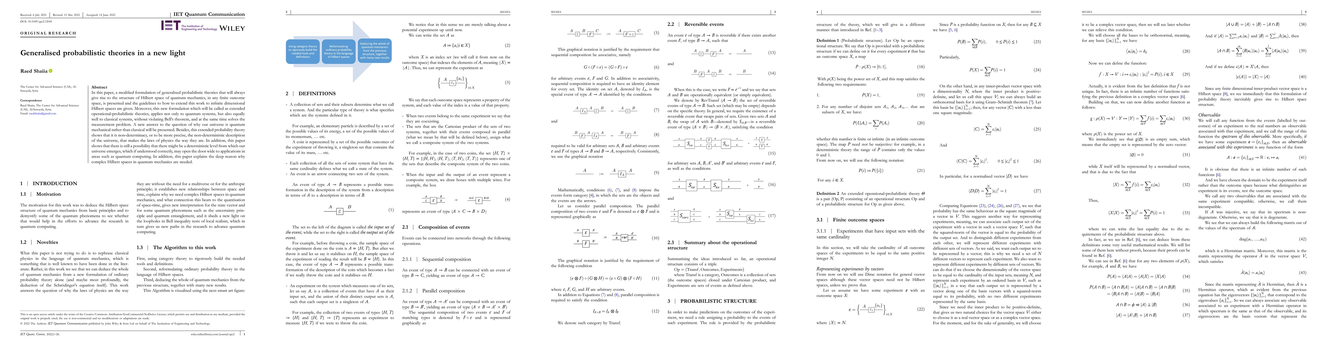 This paper introduces a new formulation of generalized probabilistic theories that consistently yield the structure of quantum mechanics' Hilbert space, applicable to both quantum and classical systems without violating Bell's theorem. It also explores the possibility of a deterministic underlying level and the necessity of complex Hilbert spaces in quantum mechanics.