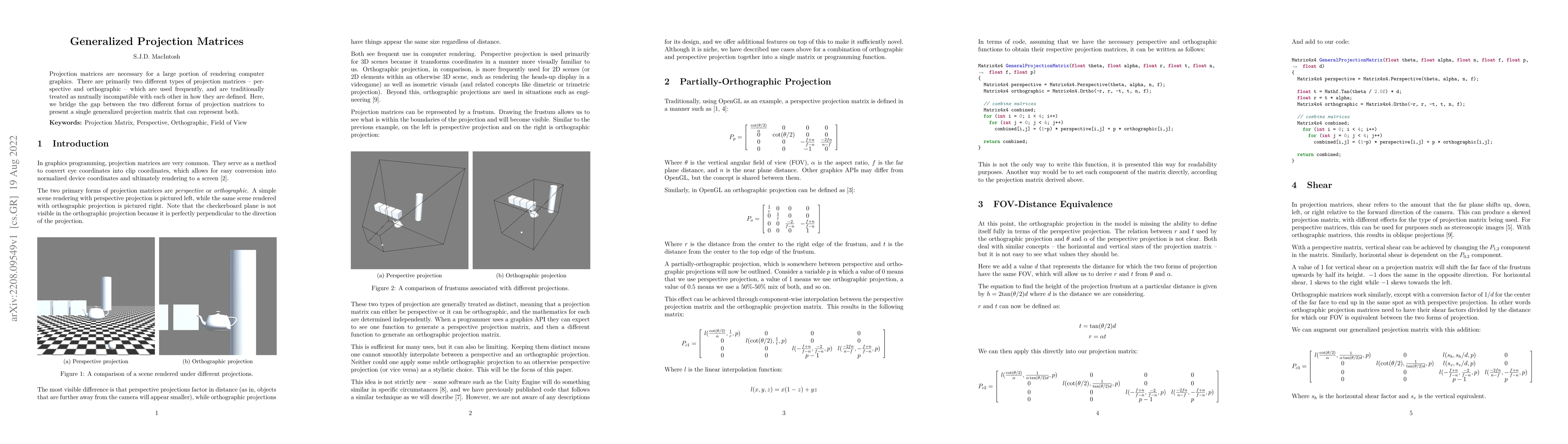 This paper introduces a unified generalized projection matrix that seamlessly integrates both perspective and orthographic projection matrices, offering a single framework to represent both traditionally distinct types. This innovation aims to simplify the rendering process in computer graphics.