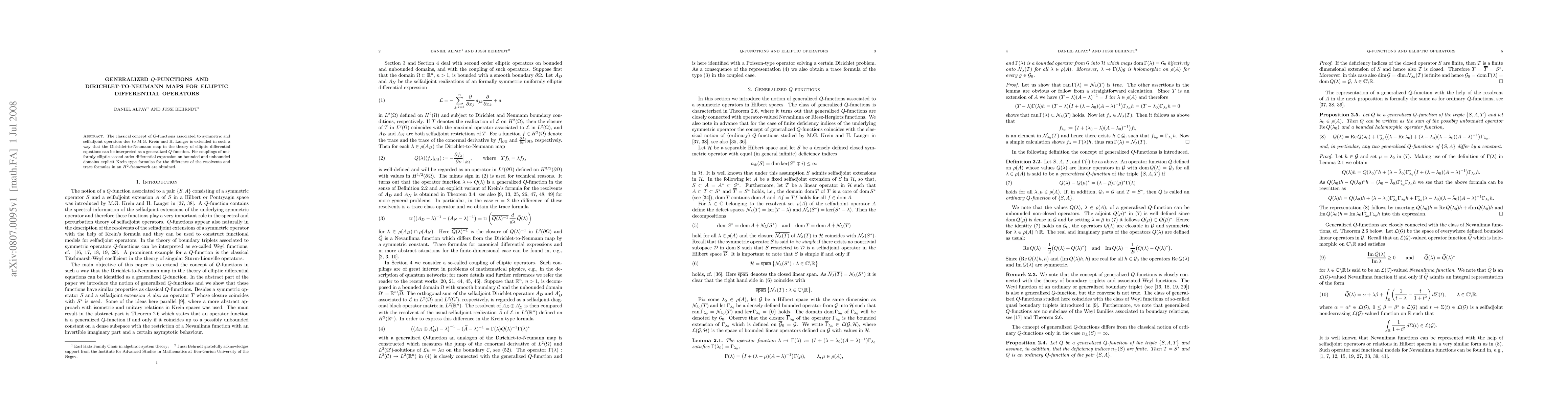 This paper extends classical $Q$-functions by interpreting the Dirichlet-to-Neumann map as a generalized $Q$-function. It provides explicit Krein type formulas for resolvent differences and trace formulas in $H^2$ for uniformly elliptic differential operators on bounded and unbounded domains.