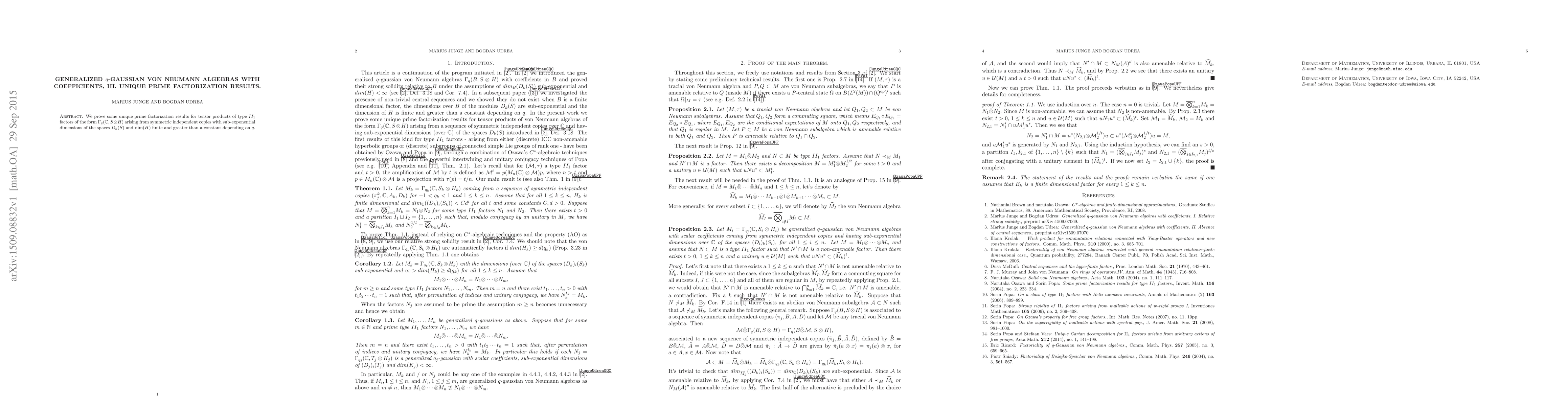 We prove some unique prime factorization results for tensor products of type $II_1$ factors of the form $\Gamma_q(\mathbb{C}, S \otimes H)$ arising from symmetric independent copies with sub-exponential dimensions of the spaces $D_k(S)$ and dim$(H)$ finite and greater than a constant depending on $q$.