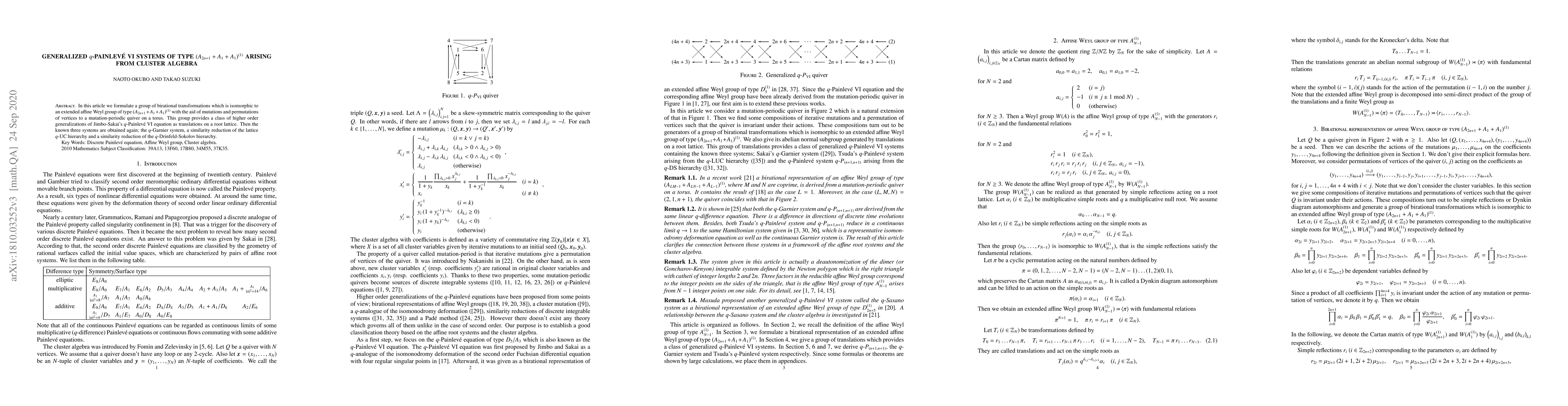 This paper formulates a group of birational transformations isomorphic to an extended affine Weyl group, derived from cluster algebra via mutations and vertex permutations. It leads to higher-order generalizations of Jimbo-Sakai's $q$-Painlevé VI equation, recovering known systems like the $q$-Garnier system and reductions of lattice $q$-UC and $q$-Drinfeld-Sokolov hierarchies.