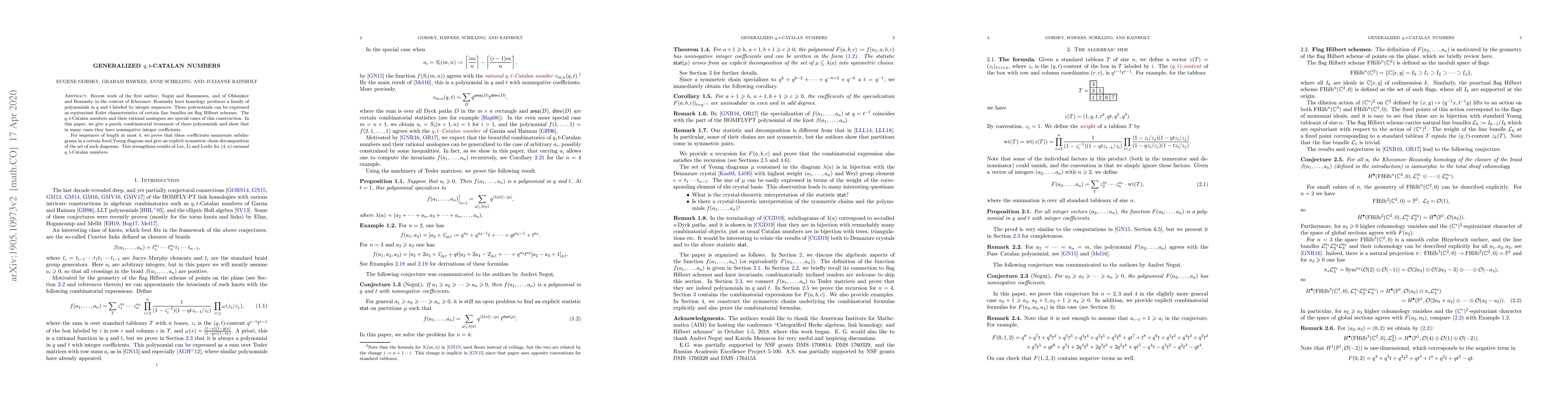 Recent work of the first author, Negut and Rasmussen, and of Oblomkov and Rozansky in the context of Khovanov--Rozansky knot homology produces a family of polynomials in $q$ and $t$ labeled by integer sequences. These polynomials can be expressed as equivariant Euler characteristics of certain line bundles on flag Hilbert schemes. The $q,t$-Catalan numbers and their rational analogues are special cases of this construction. In this paper, we give a purely combinatorial treatment of these polynomials and show that in many cases they have nonnegative integer coefficients. For sequences of length at most 4, we prove that these coefficients enumerate subdiagrams in a certain fixed Young diagram and give an explicit symmetric chain decomposition of the set of such diagrams. This strengthens results of Lee, Li and Loehr for $(4,n)$ rational $q,t$-Catalan numbers.