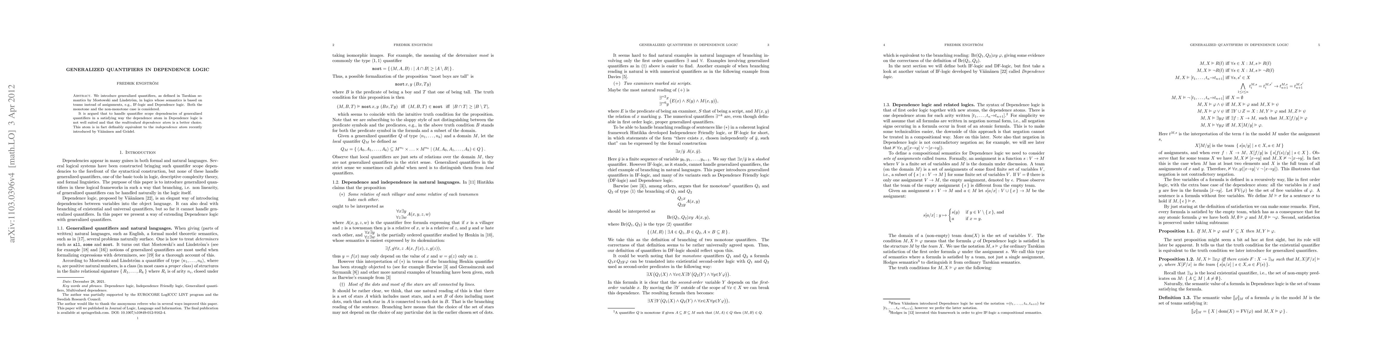This paper introduces generalized quantifiers within Dependence Logic, contrasting the dependence atom with the multivalued dependence atom, which is argued to better handle quantifier scope dependencies. The study considers both monotone and non-monotone cases in logics based on teams rather than assignments.