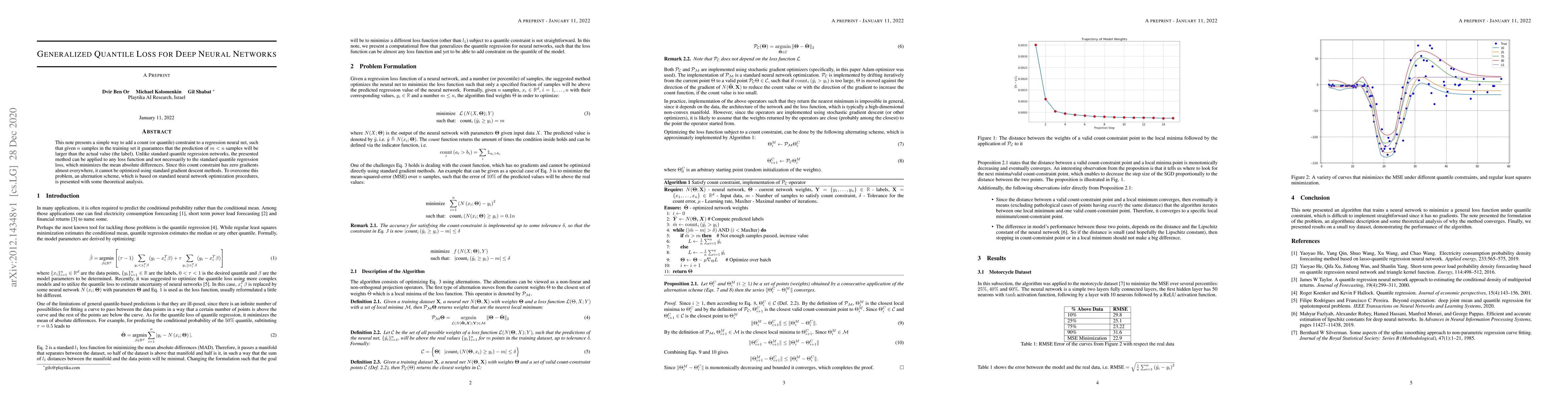 This paper introduces a generalized quantile loss for deep neural networks, enabling quantile constraints on regression predictions without relying on standard quantile regression. An alternation optimization scheme is proposed to handle the zero gradient issue inherent in the quantile constraint.