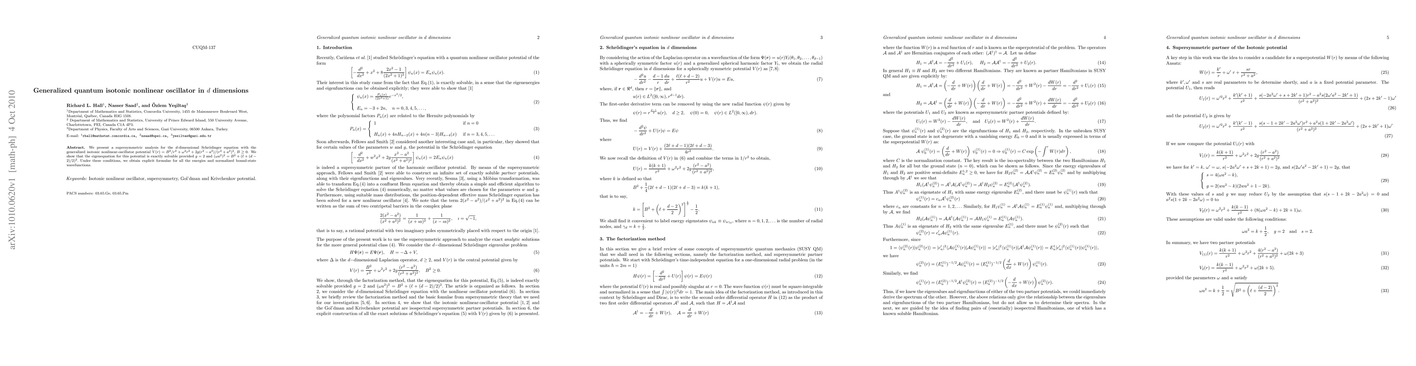 This paper presents a supersymmetric analysis of the d-dimensional Schrödinger equation with a generalized isotonic nonlinear oscillator potential. It demonstrates that the eigenequation is exactly solvable under specific conditions, yielding explicit formulae for energies and wavefunctions.