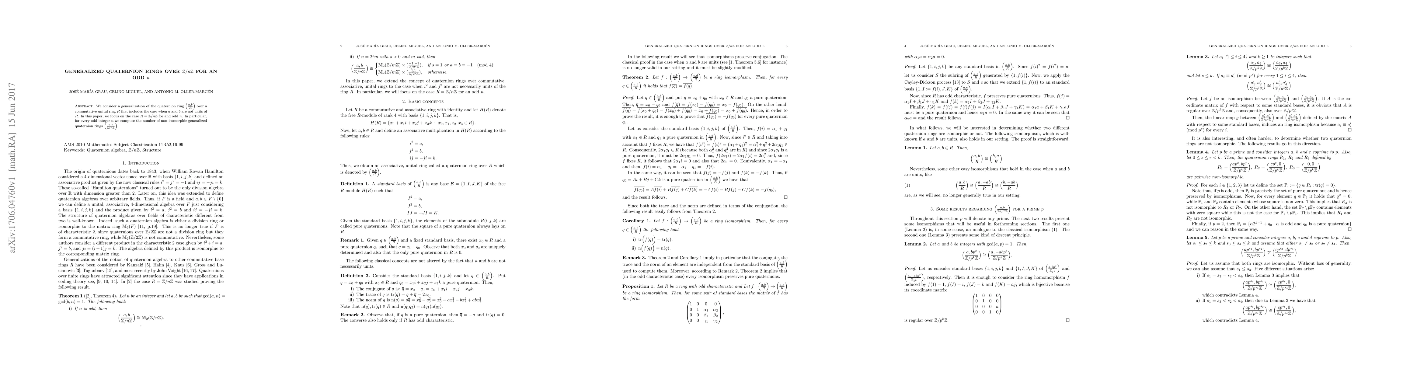 This paper generalizes quaternion rings over the ring $\mathbb{Z}/n\mathbb{Z}$ for odd $n$, examining cases where $a$ and $b$ are not necessarily units. It specifically computes the number of non-isomorphic generalized quaternion rings for any odd integer $n$.