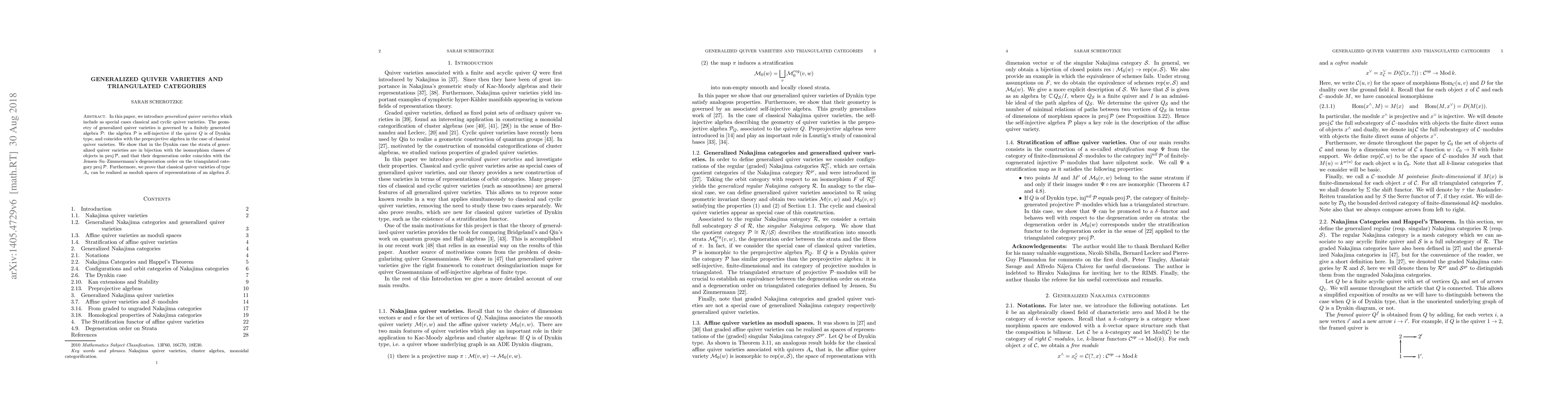 This paper introduces generalized quiver varieties, encompassing classical and cyclic varieties, and shows that their geometric structure is governed by a self-injective algebra P. It establishes a bijection between strata of these varieties and objects in proj P, aligning their degeneration order with a specific triangulated category order.