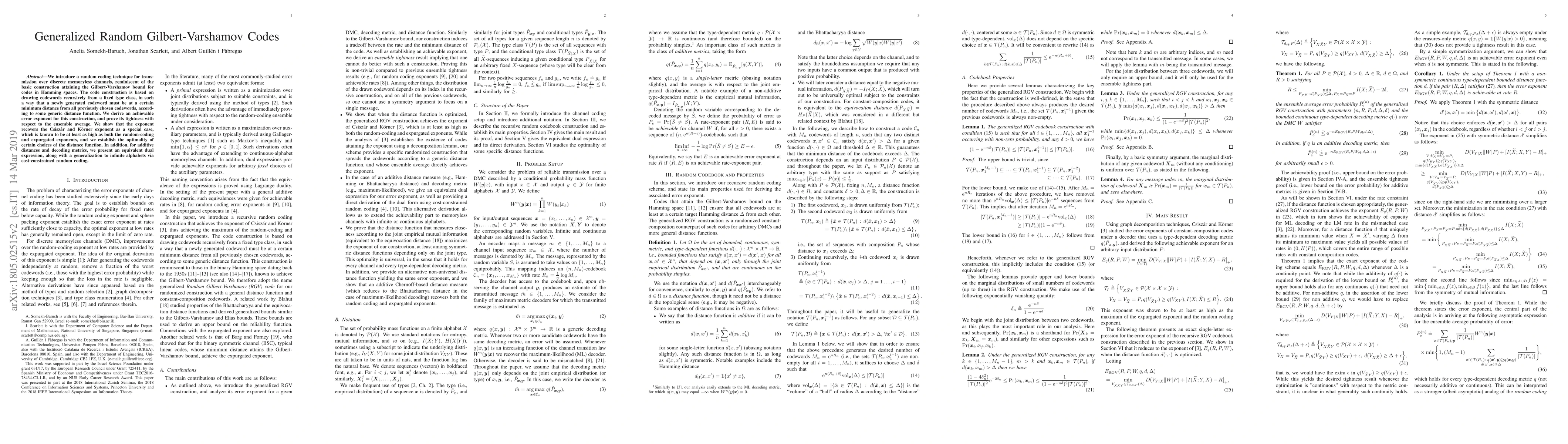 We introduce a random coding technique for transmission over discrete memoryless channels, reminiscent of the basic construction attaining the Gilbert-Varshamov bound for codes in Hamming spaces. The code construction is based on drawing codewords recursively from a fixed type class, in such a way that a newly generated codeword must be at a certain minimum distance from all previously chosen codewords, according to some generic distance function. We derive an achievable error exponent for this construction, and prove its tightness with respect to the ensemble average. We show that the exponent recovers the Csisz\'{a}r and K{\"o}rner exponent as a special case, which is known to be at least as high as both the random-coding and expurgated exponents, and we establish the optimality of certain choices of the distance function. In addition, for additive distances and decoding metrics, we present an equivalent dual expression, along with a generalization to infinite alphabets via cost-constrained random coding.