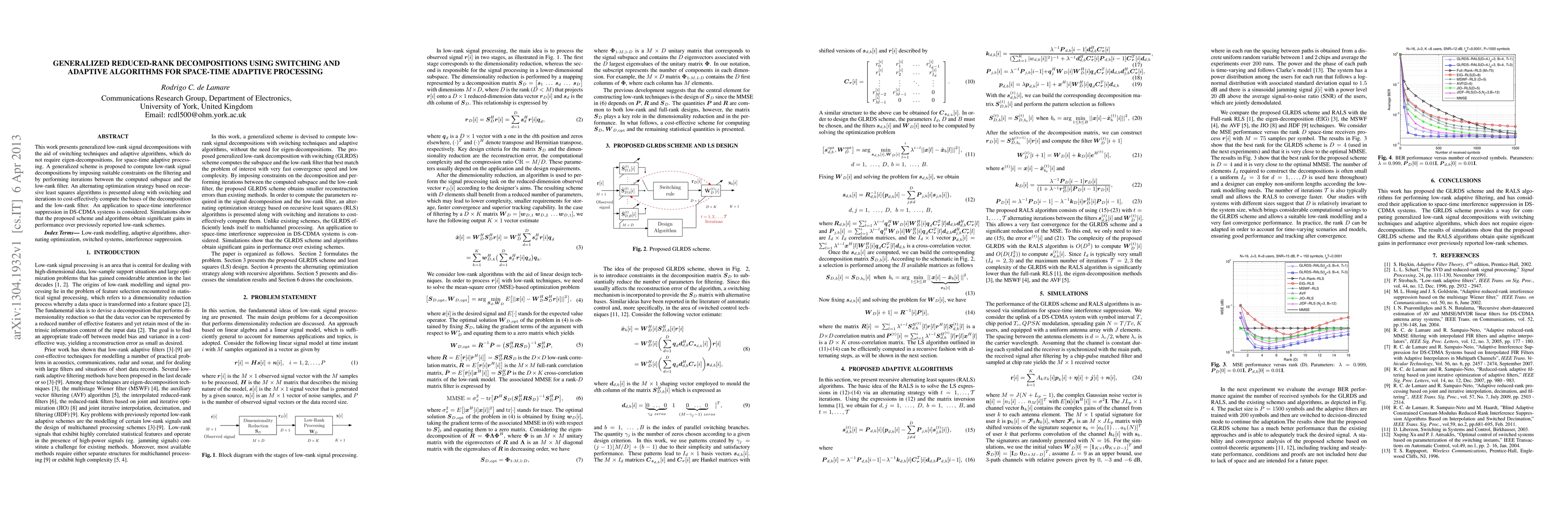 This paper proposes generalized low-rank signal decompositions using adaptive algorithms and switching techniques for space-time adaptive processing, achieving significant performance gains over previous methods in DS-CDMA systems. The approach employs iterative optimization and recursive least squares without eigen-decompositions.