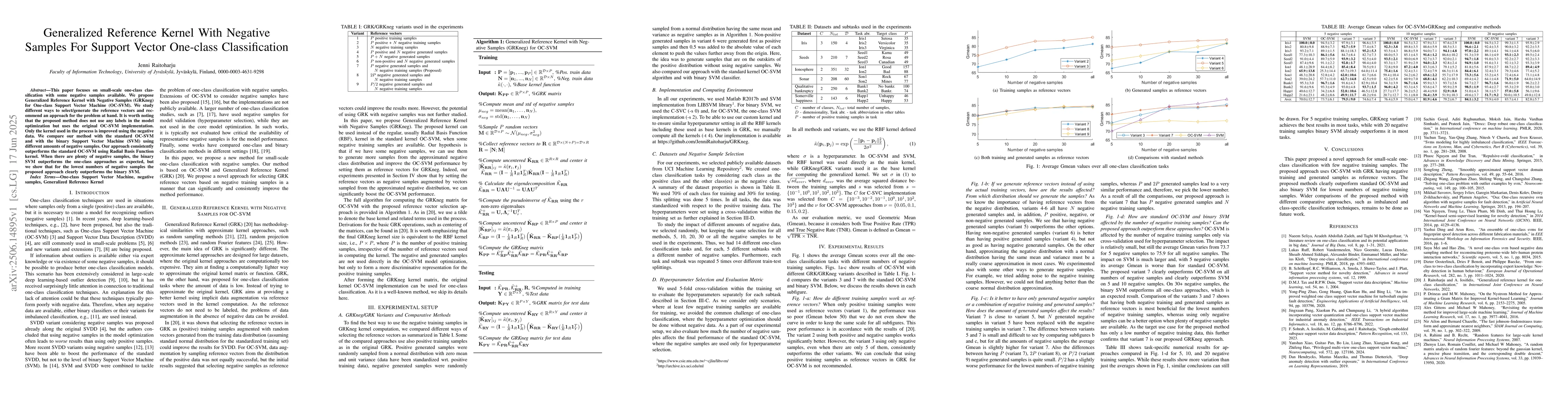 This paper focuses on small-scale one-class classification with some negative samples available. We propose Generalized Reference Kernel with Negative Samples (GRKneg) for One-class Support Vector Machine (OC-SVM). We study different ways to select/generate the reference vectors and recommend an approach for the problem at hand. It is worth noting that the proposed method does not use any labels in the model optimization but uses the original OC-SVM implementation. Only the kernel used in the process is improved using the negative data. We compare our method with the standard OC-SVM and with the binary Support Vector Machine (SVM) using different amounts of negative samples. Our approach consistently outperforms the standard OC-SVM using Radial Basis Function kernel. When there are plenty of negative samples, the binary SVM outperforms the one-class approaches as expected, but we show that for the lowest numbers of negative samples the proposed approach clearly outperforms the binary SVM.