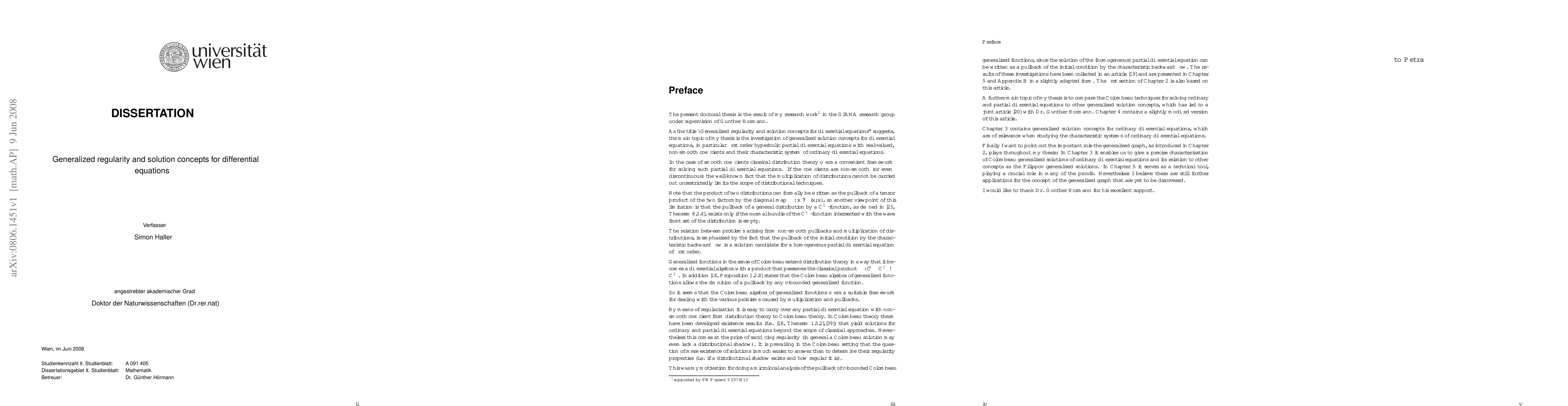 As the title ``Generalized regularity and solution concepts for differential equations'' suggests, the main topic of my thesis is the investigation of generalized solution concepts for differential equations, in particular first order hyperbolic partial differential equations with real-valued, non-smooth coefficients and their characteristic system of ordinary differential equations. In Colombeau theory there have been developed existence results that yield solutions for ordinary and partial differential equations beyond the scope of classical approaches. Nevertheless this comes at the price of sacrificing regularity (in general a Colombeau solution may even lack a distributional shadow). It is prevailing in the Colombeau setting that the question of mere existence of solutions is much easier to answer than to determine their regularity properties (i.e. if a distributional shadow exists and how regular it is). In order order to address these regularity question and encouraged by the fact that the solution of a (homogeneous) first order partial differential equation can be written as a pullback of the initial condition by the characteristic backward flow, a main topic of my thesis deals with the microlocal analysis of pullbacks of c-bounded Colombeau generalized functions. Another topic is the comparsion of Colombeau techniques for solving ordinary and partial differential equations to other generalized solution concepts, which has led to a joint article with G\"unther H\"ormann. A useful tool for this purpose is the concept of a generalized graph, which has been developed in the thesis.