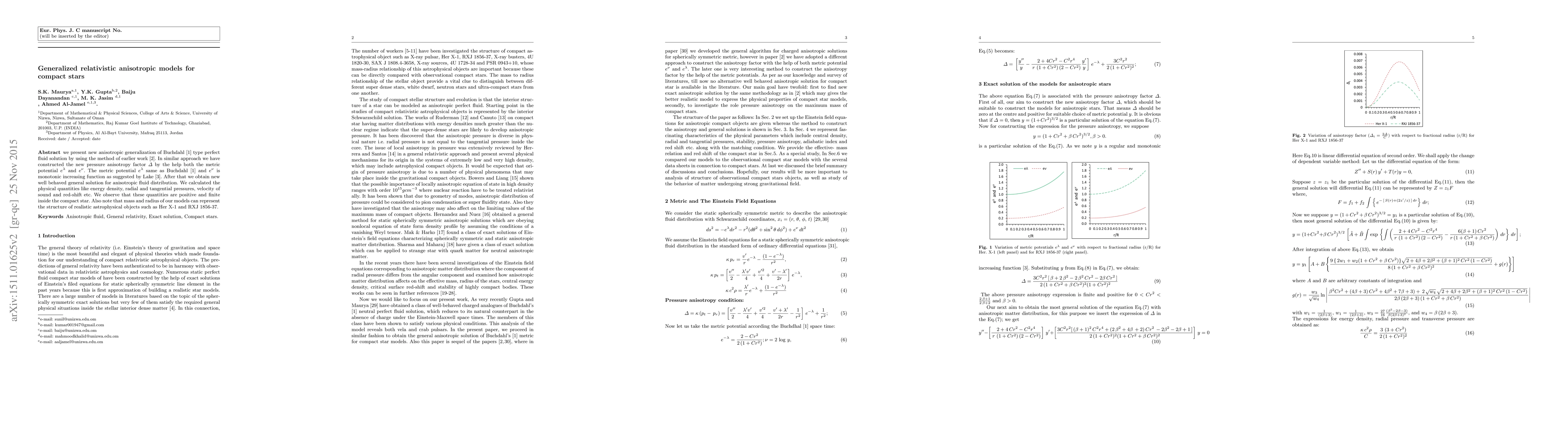We present new anisotropic generalization of Buchdahl [1] type perfect fluid solution by using the method of earlier work [2]. In similar approach we have constructed the new pressure anisotropy factor ${\Delta}$ by the help both the metric potential $e^{\lambda}$ and $e^{\nu}$. The metric potential $e^{\lambda}$ same as Buchdahl [1] and $e^{\nu}$ is monotonic increasing function as suggested by Lake [3]. After that we obtain new well behaved general solution for anisotropic fluid distribution. We calculated the physical quantities like energy density, radial and tangential pressures, velocity of sound and red-shift etc. We observe that these quantities are positive and finite inside the compact star. Also note that mass and radius of our models can represent the structure of realistic astrophysical objects such as like Her X-1 and RXJ1856-37.