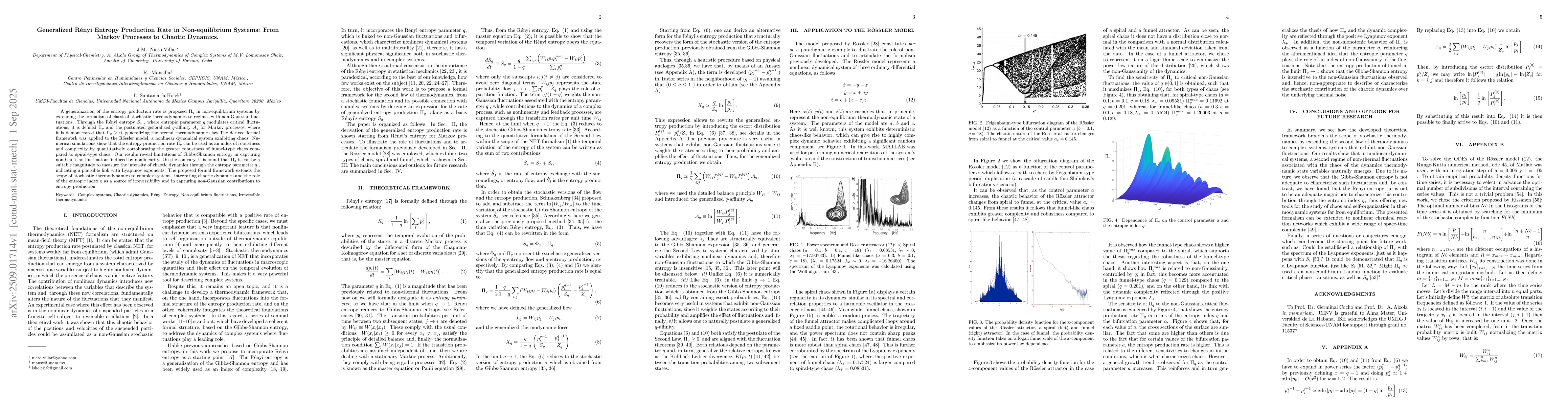 A generalization of the entropy production rate is proposed $\Pi_q$ in non-equilibrium systems by extending the formalism of classical stochastic thermodynamics to regimes with non-Gaussian fluctuations. Through the R\'enyi entropy $S_q$ , where entropic parameter $q$ modulates critical fluctuations, it is defined $\Pi_q$ and the postulated generalized $q$-affinity ${\cal A}_q$ for Markov processes, where it is demonstrated that $\Pi_q \geq 0$, generalizing the second thermodynamics law.The derived formal framework was applied to the R\"ossler model, a nonlinear dynamical system exhibiting chaos. Numerical simulations show that the entropy production rate $\Pi_q$ can be used as an index of robustness and complexity by quantitatively corroborating the greater robustness of funnel-type chaos compared to spiral-type chaos. Our results reveal limitations of Gibbs-Shannon entropy in capturing non-Gaussian fluctuations induced by nonlinearity. On the contrary, it is found that $\Pi_q$ it can be a suitable magnitude to measure the intensity of chaotic dynamics through the entropy parameter $q$ , indicating a plausible link with Lyapunov exponents. The proposed formal framework extends the scope of stochastic thermodynamics to complex systems, integrating chaotic dynamics and the role of the entropic index q as a source of irreversibility and in capturing non-Gaussian contributions to entropy production.