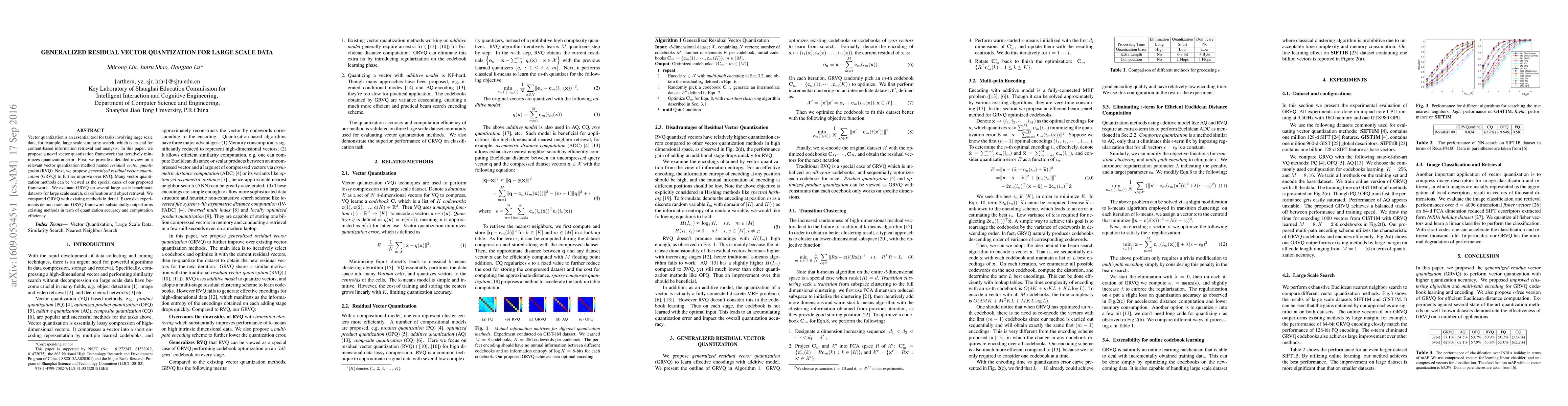 This paper proposes a novel vector quantization framework called generalized residual vector quantization (GRVQ) that iteratively minimizes quantization error, improving upon the existing residual vector quantization (RVQ) method. Extensive experiments on large scale datasets show that GRVQ outperforms existing methods in both quantization accuracy and computational efficiency.
