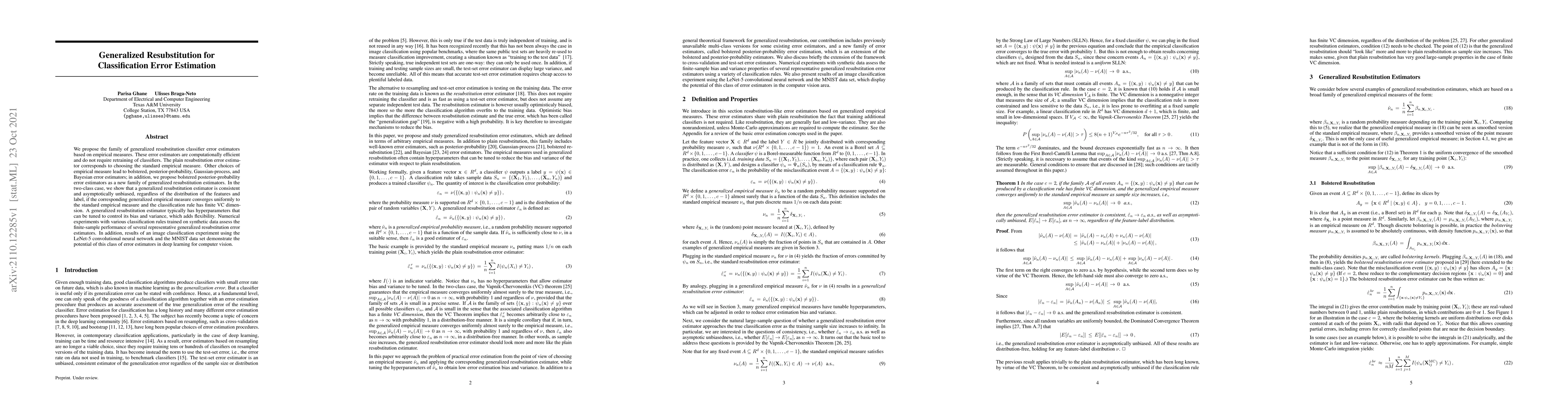 We propose the family of generalized resubstitution classifier error estimators based on empirical measures. These error estimators are computationally efficient and do not require re-training of classifiers. The plain resubstitution error estimator corresponds to choosing the standard empirical measure. Other choices of empirical measure lead to bolstered, posterior-probability, Gaussian-process, and Bayesian error estimators; in addition, we propose bolstered posterior-probability error estimators as a new family of generalized resubstitution estimators. In the two-class case, we show that a generalized resubstitution estimator is consistent and asymptotically unbiased, regardless of the distribution of the features and label, if the corresponding generalized empirical measure converges uniformly to the standard empirical measure and the classification rule has a finite VC dimension. A generalized resubstitution estimator typically has hyperparameters that can be tuned to control its bias and variance, which adds flexibility. Numerical experiments with various classification rules trained on synthetic data assess the thefinite-sample performance of several representative generalized resubstitution error estimators. In addition, results of an image classification experiment using the LeNet-5 convolutional neural network and the MNIST data set demonstrate the potential of this class of error estimators in deep learning for computer vision.