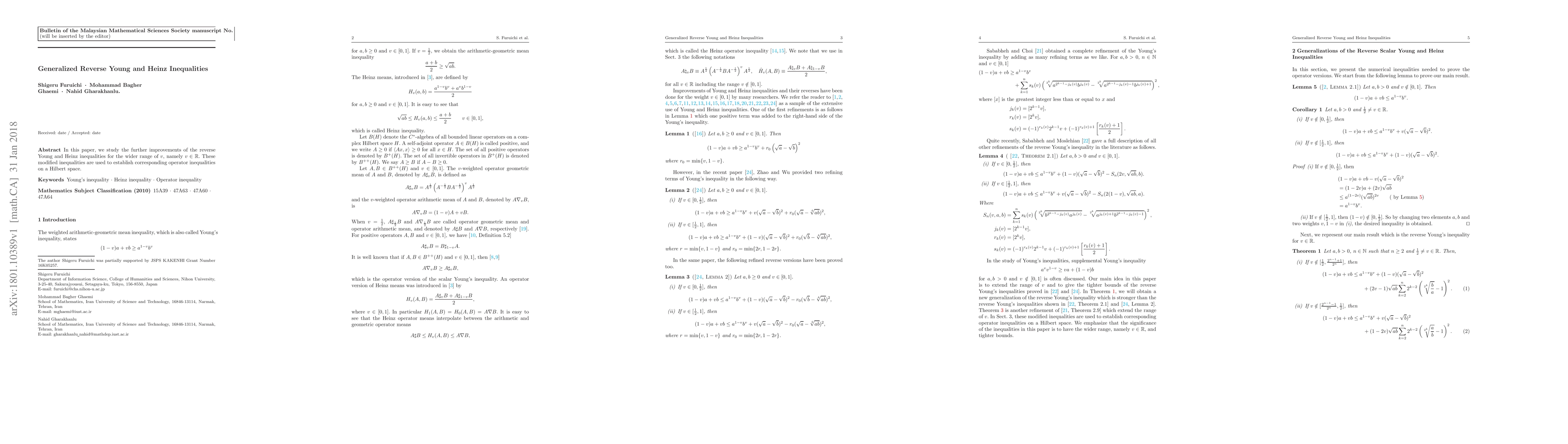 This paper improves the reverse Young and Heinz inequalities for all real values of $v$ and applies these modifications to establish new operator inequalities in a Hilbert space. The results extend the applicability and utility of these classical inequalities.