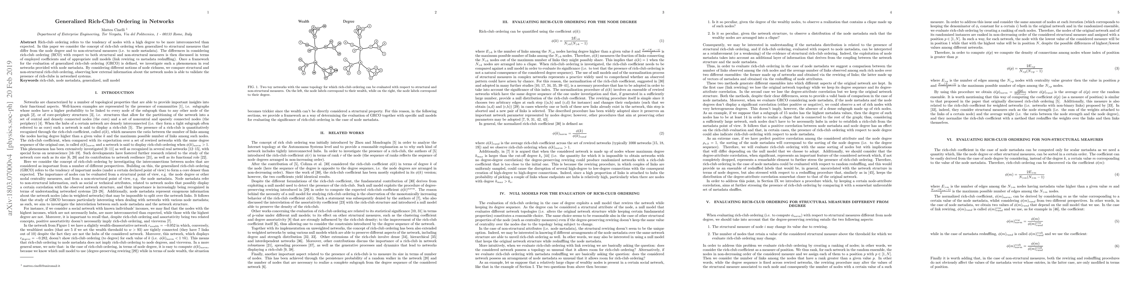 This paper explores generalized rich-club ordering in networks, extending the concept beyond node degree to include structural and non-structural measures like node metadata. It compares the implications of these measures using different coefficients and null models, and investigates their presence in real networks.