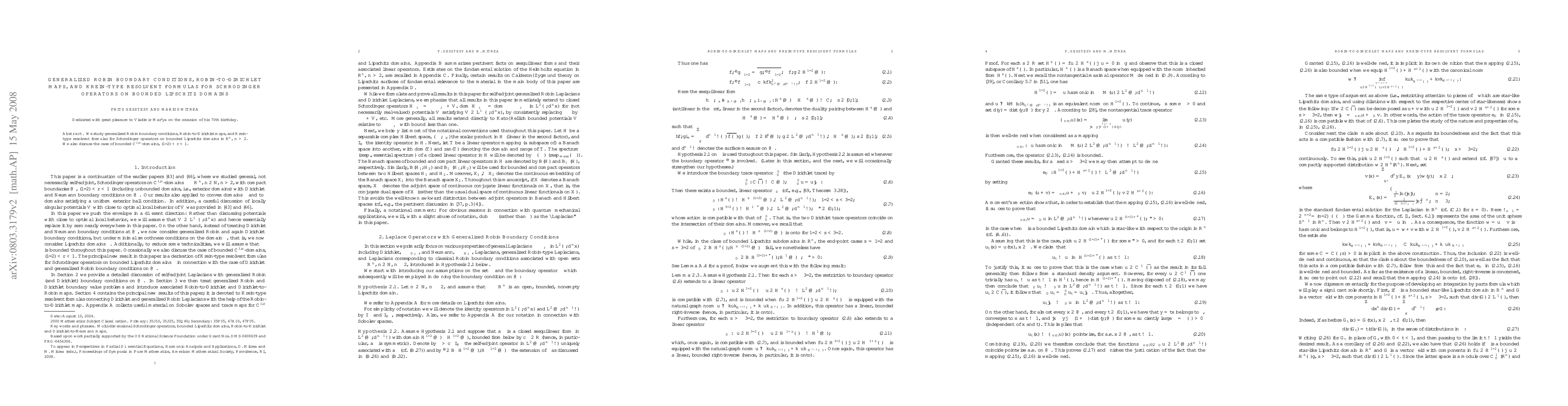 Summary: This paper investigates generalized Robin boundary conditions and associated Robin-to-Dirichlet maps for Schrödinger operators on bounded Lipschitz and $C^{1,r}$ domains, $n\ge 2$, and presents Krein-type resolvent formulas for these settings.