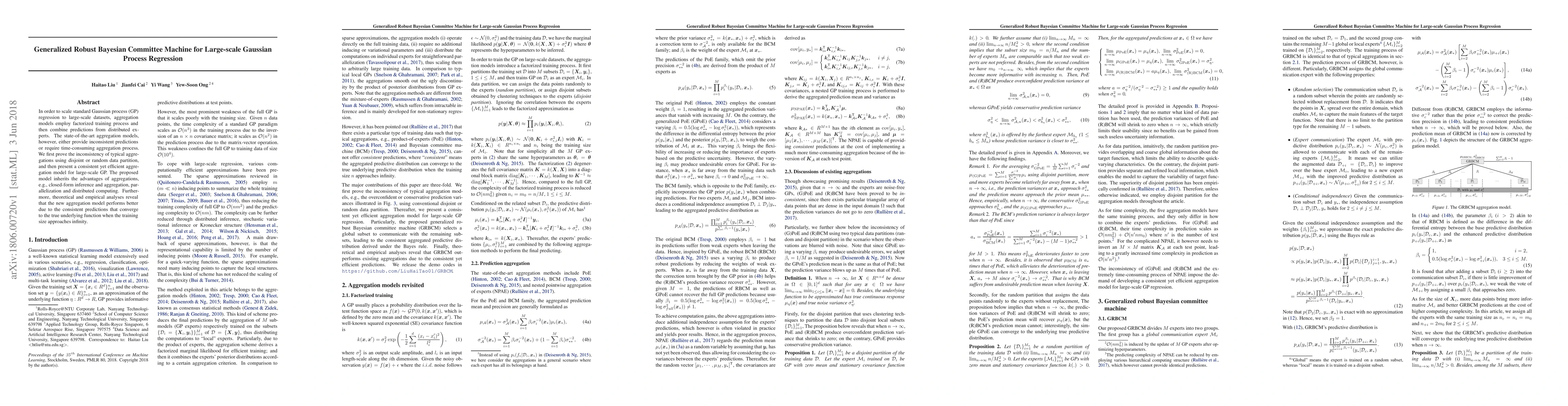 This paper proposes a generalized robust Bayesian committee machine for large-scale Gaussian process regression, addressing the inconsistency and inefficiency of existing aggregation models. The new model achieves consistent and efficient predictions through a novel aggregation process, demonstrating superior performance both theoretically and empirically.